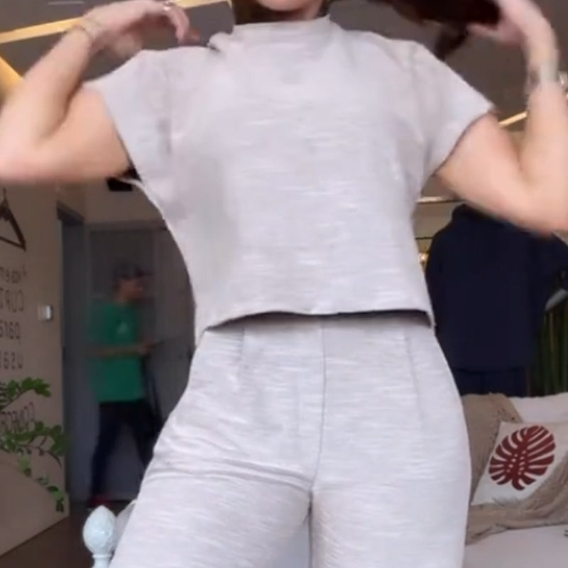 ⏳Limited time 50% off💥Women's two-piece set of plain short-sleeved tops and pants