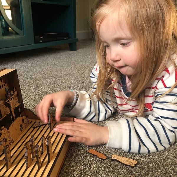 Dive into the events of Christ’s resurrection with this detailed playset featuring 30 laser-cut Baltic birch veneer pieces. Each piece fits seamlessly into a slotted stand for easy access during storytelling, making it a perfect tool for teaching about Easter.