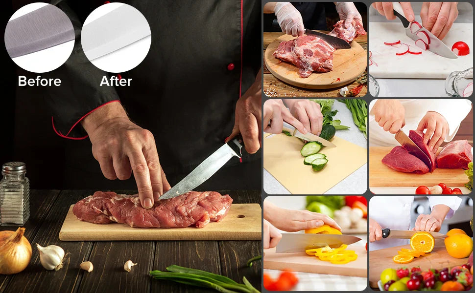 - Multi-purpose: Multiple sharpening stages can meet the needs of your knife of different sizes, and can also be used to sharpen scissors. We provide a 3-year warranty, no repair, only replacement. If you have any dissatisfaction in the process of use, please contact us in time, we will certainly give you a satisfactory solution.