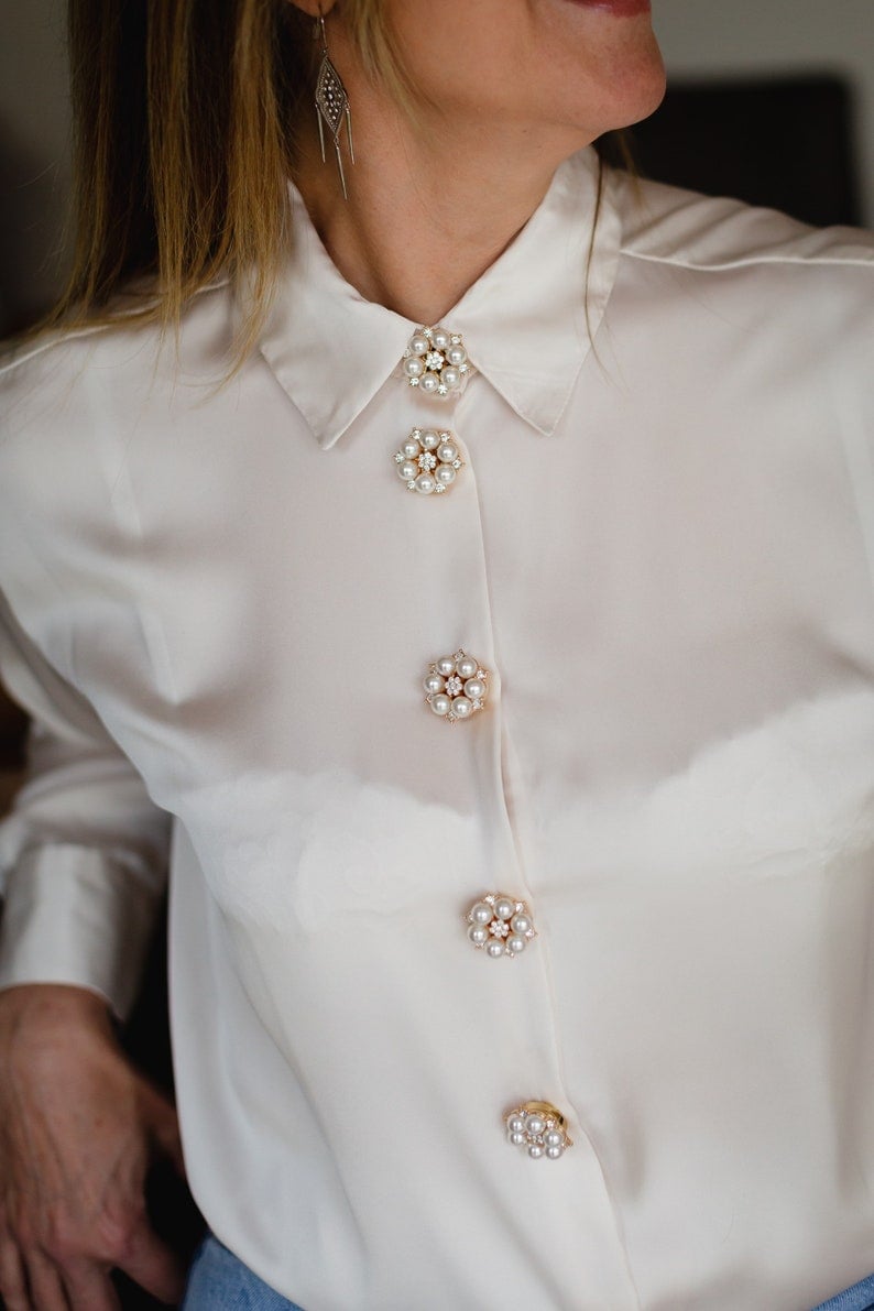 Our Button Jewels are designed to slip over your shirt or blouse buttons, transforming your everyday clothing into a stylish statement.