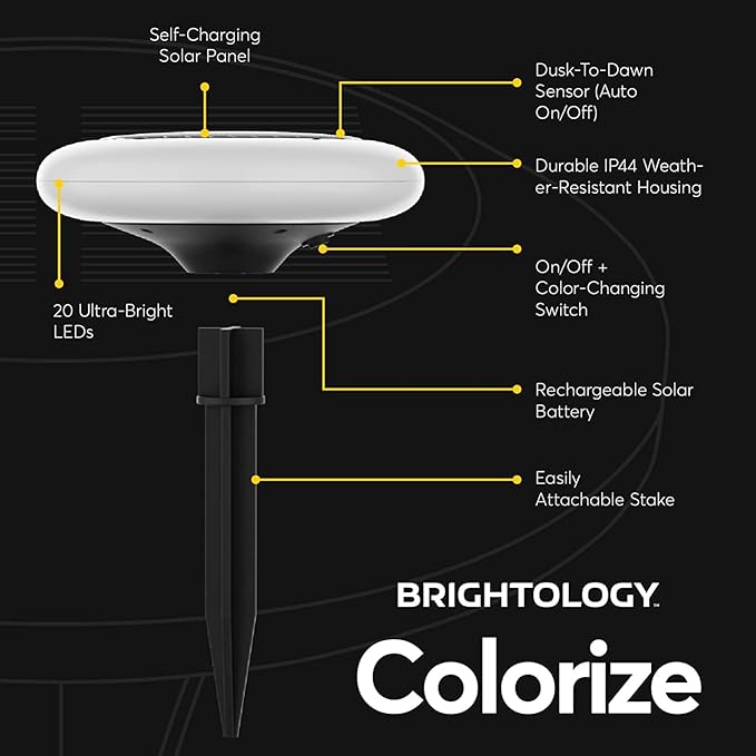 Look, we’re all busy. We get home from a long day of work but it doesn’t stop. Kids, pets, spouse, cooking dinner, etc. It’s easy to forget you took 20 seconds to install a beautiful solar light. But no worries, Colorize turns on by itself. The built-in sensors know when it’s dark and it activates Colorize automatically. No need to fumble with a light switch or go outside to turn them on. Just look out your window and enjoy the light show.