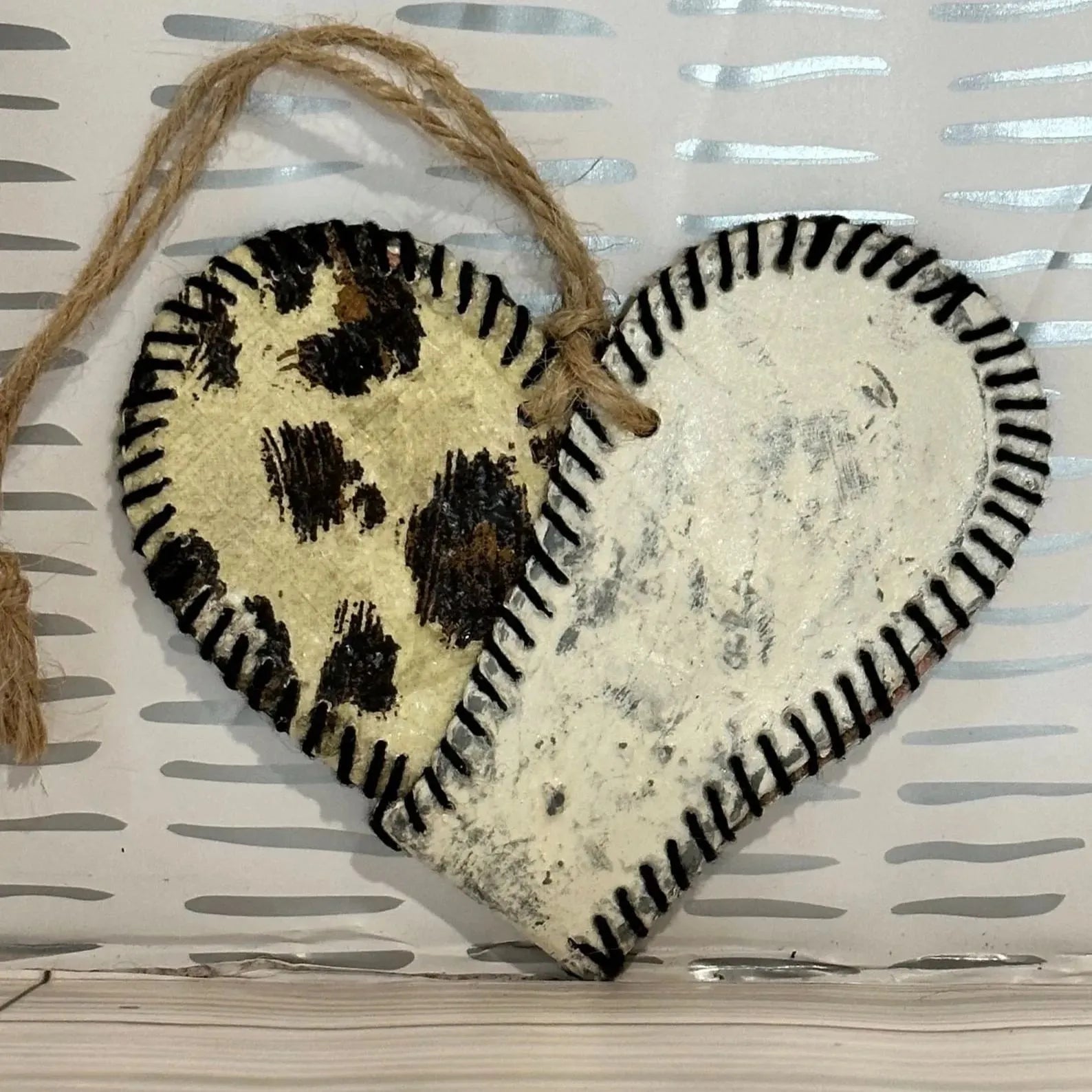 My heart ornaments are made from both sides of a real ball and have a twine hanging loop fixed to the top for hanging.