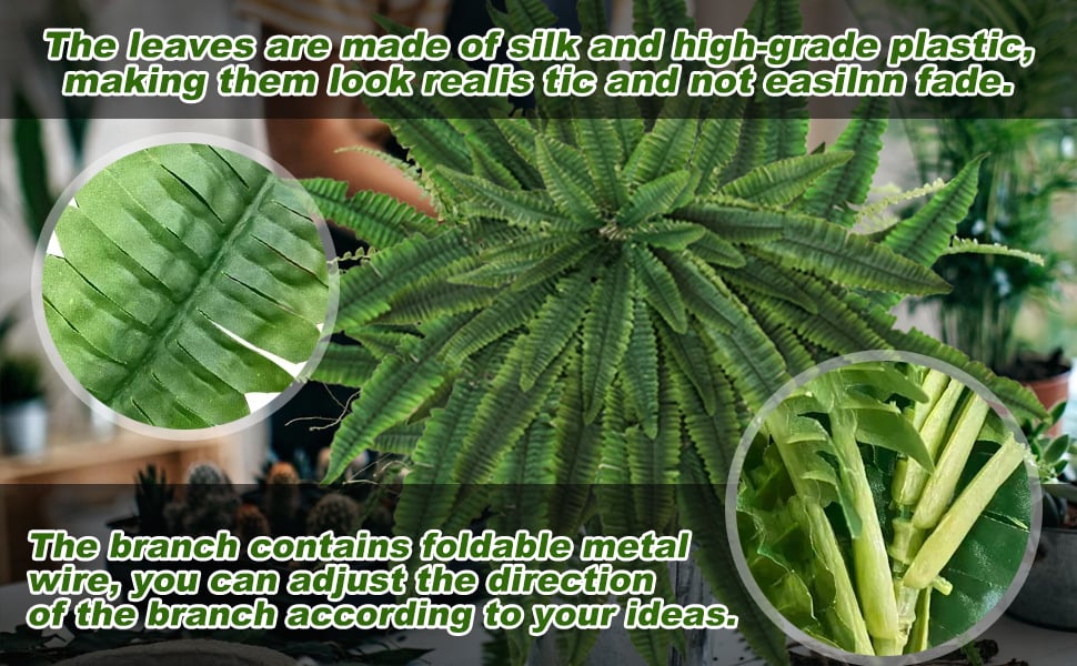 šŸŒøć€Full size and high quality怑-Ā Suitable for decoration: Ā This large Artificial plants Boston Fern contains 18 branches, making it looks very plump. The length of a single branch can reach 27.55 inches, and the horizontal expansion size can reach 43.30 inches, making it looks very large and full. It is very suitable for places such as courtyards, living rooms, offices, etc