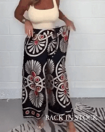 Fashion Prints: Fashion prints on the wide-leg pants make a bold fashion statement.