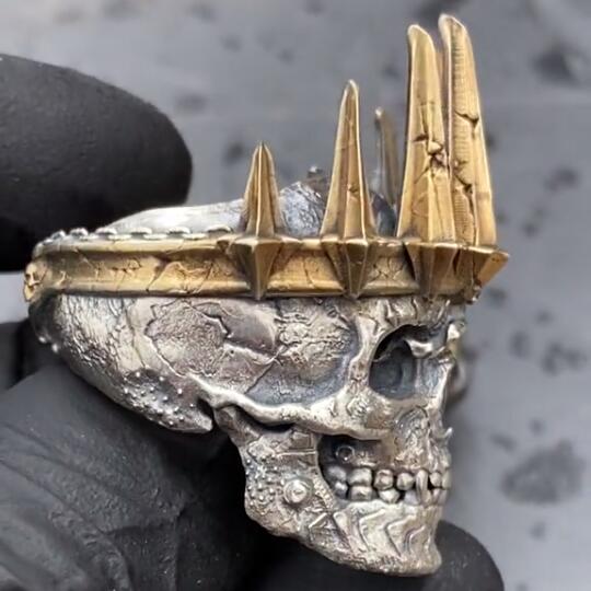 No expense was spared in bringing this piece to life. Cast your eyes upon his weathered skull, smoking eye sockets and imposing crown. Inside the band, you will find hidden a tribute to Saint Kargoth and a replica of his Death Mask. Procure this ring and discover the untold powers that it grants its wearer!