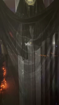 Size - 12.3ft(L) x 5.4ft(W),This hanging ghost is made up of black silks which look translucent, making the floaty chiffon more like the coat of a ghost. Easy to Use with a fish thread at the top of mask and two sides of flying gauze that can be fixed, the tail fabric can be arranged arbitrarily and make different shapes.