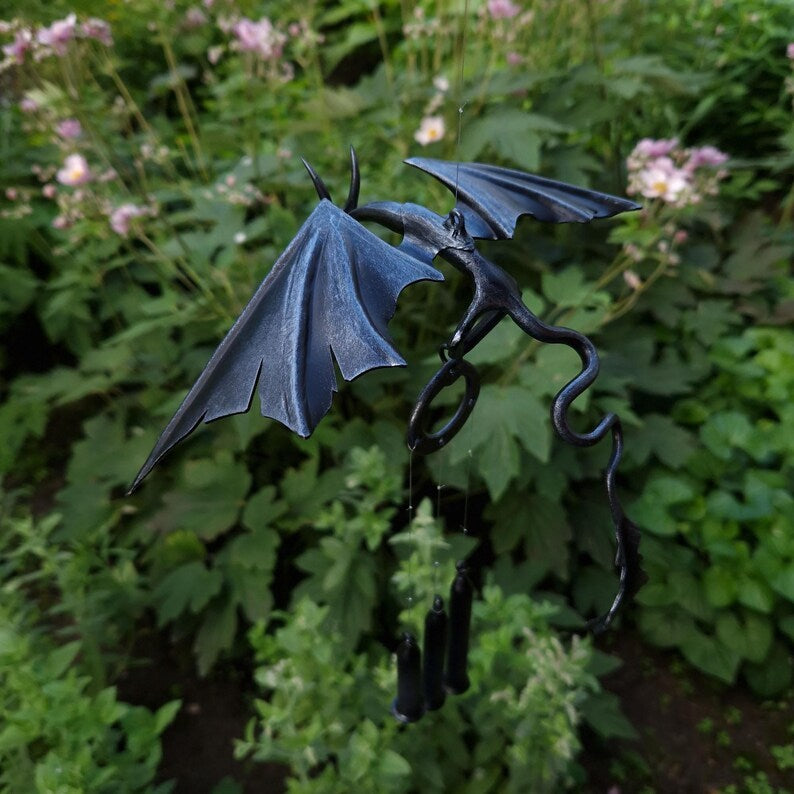 Such a fantasy dragon figure, hanging on the terrace of the house or in the room under the ceiling attracts attention and makes nice sounds with its bells.