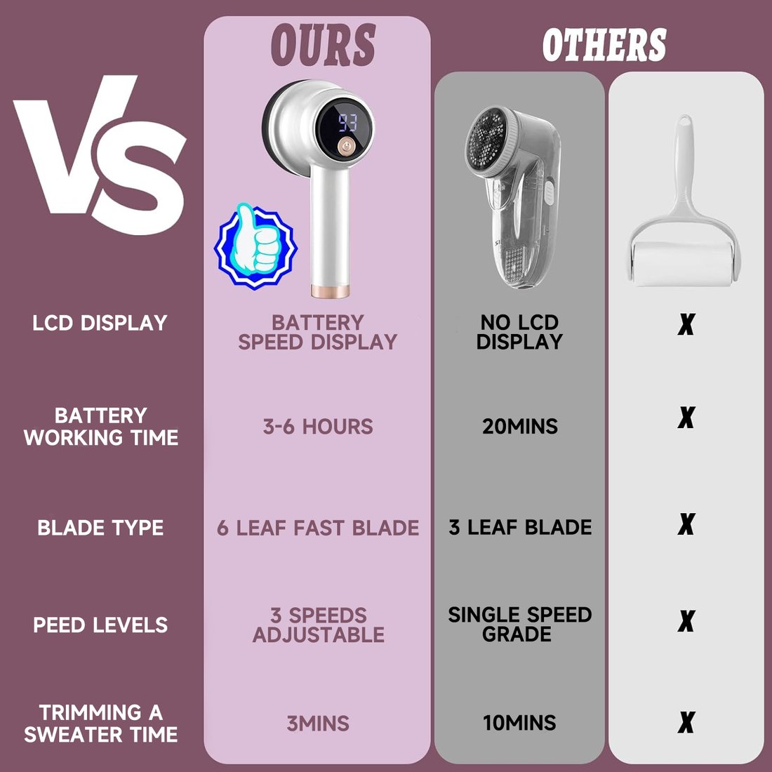 Fabric shaver up to 7000-8000 RPM Rotation. 6 stainless steel blades, 2x lint removal efficiency, which can remove clothing fuzz faster and more thoroughly.