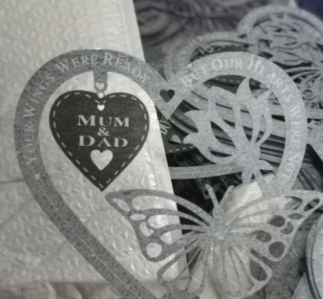 🦋The plaque says, "your wings were ready, but our hearts were not." Butterflies, flowers, and hearts all mean that you miss them. This commemorative decoration is suitable for indoor and outdoor use.