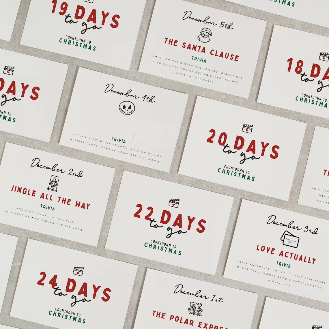 🎅🎄Each box of our Deluxe Advent Calendar contains 24 cards with Christmas movie names and some fun trivia! A lovely gift for him or her, the family or for any movie fan!