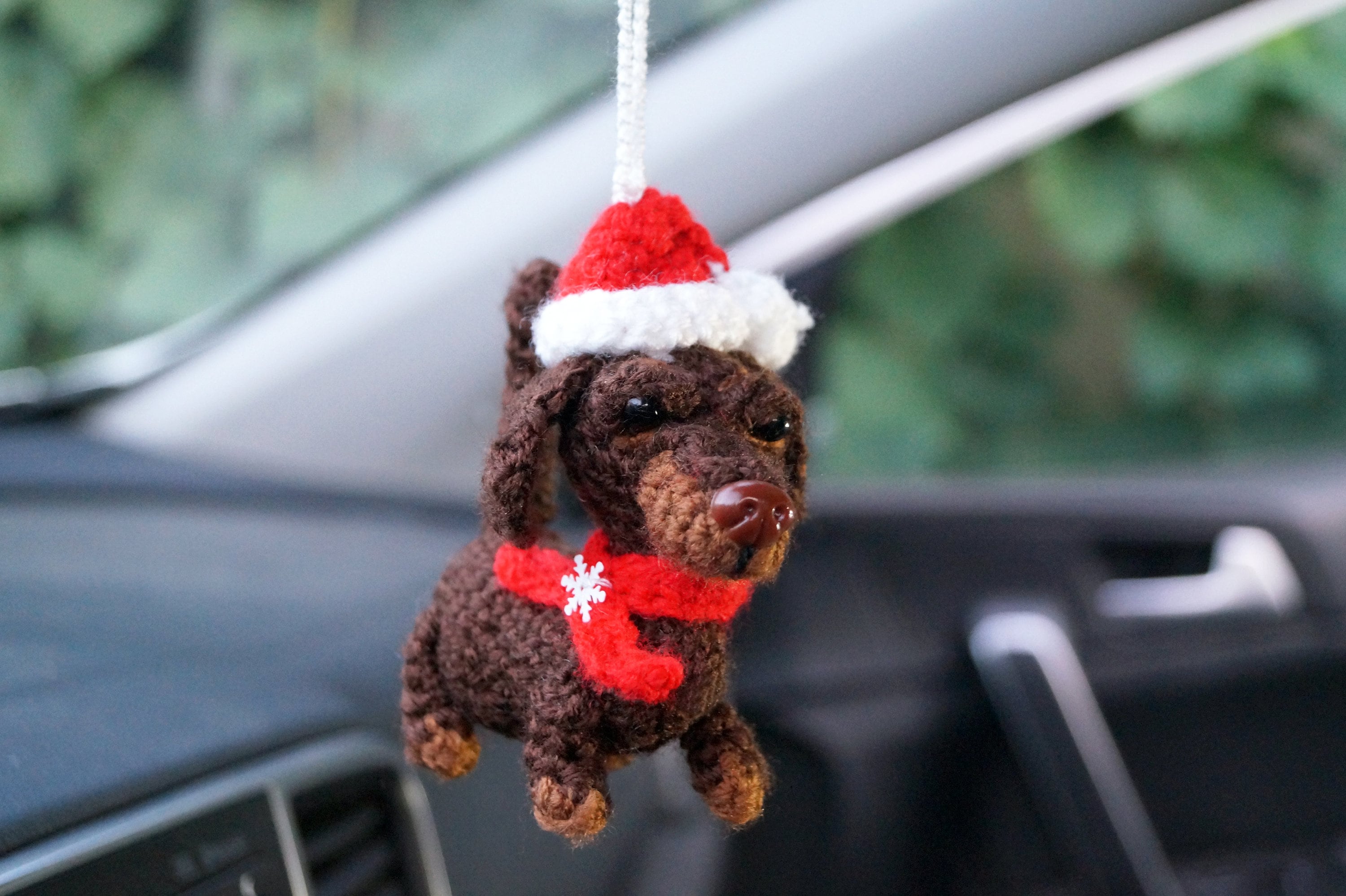 ✨Add a touch of personality, charm and some holiday cheer to your car with this adorable dachshund car mirror decoration!