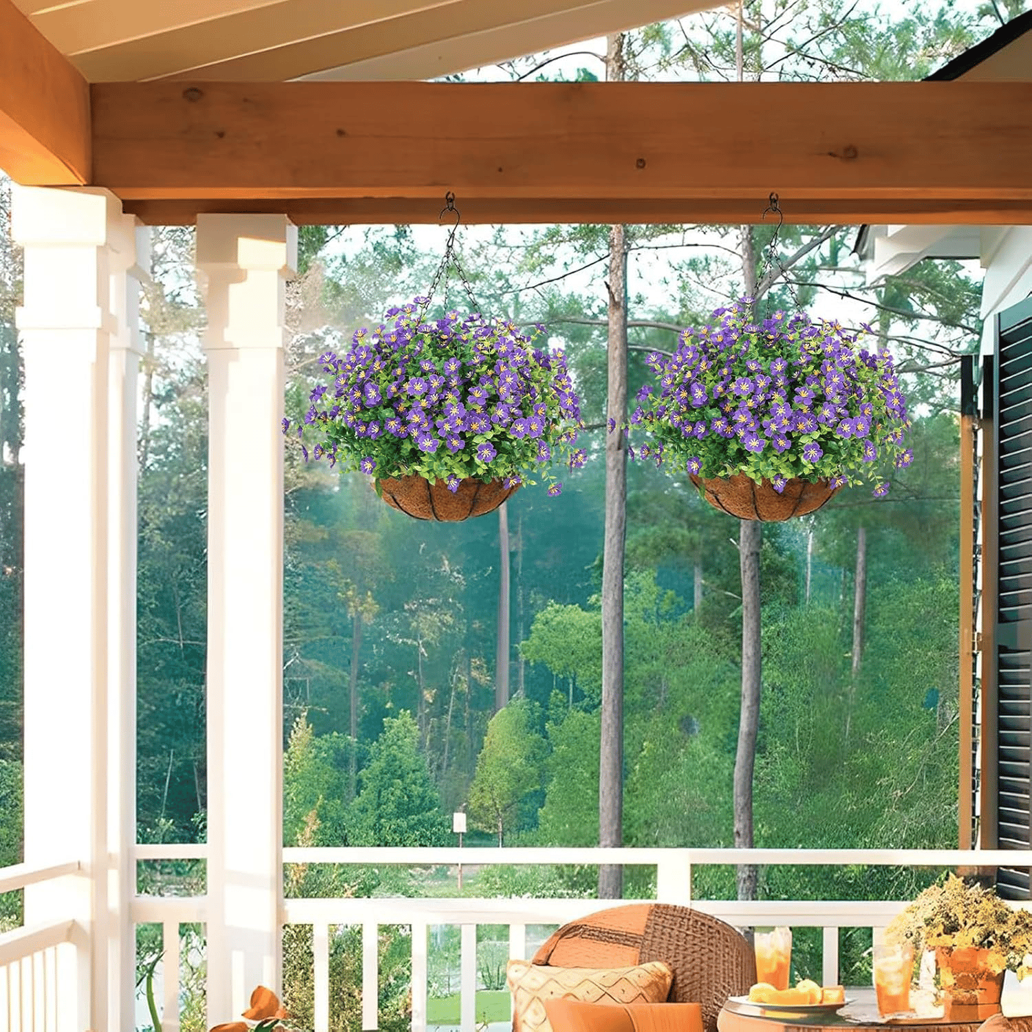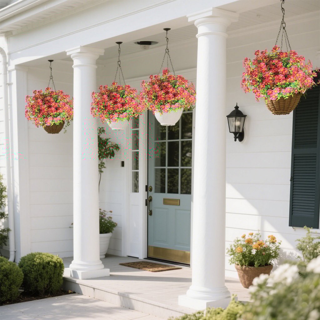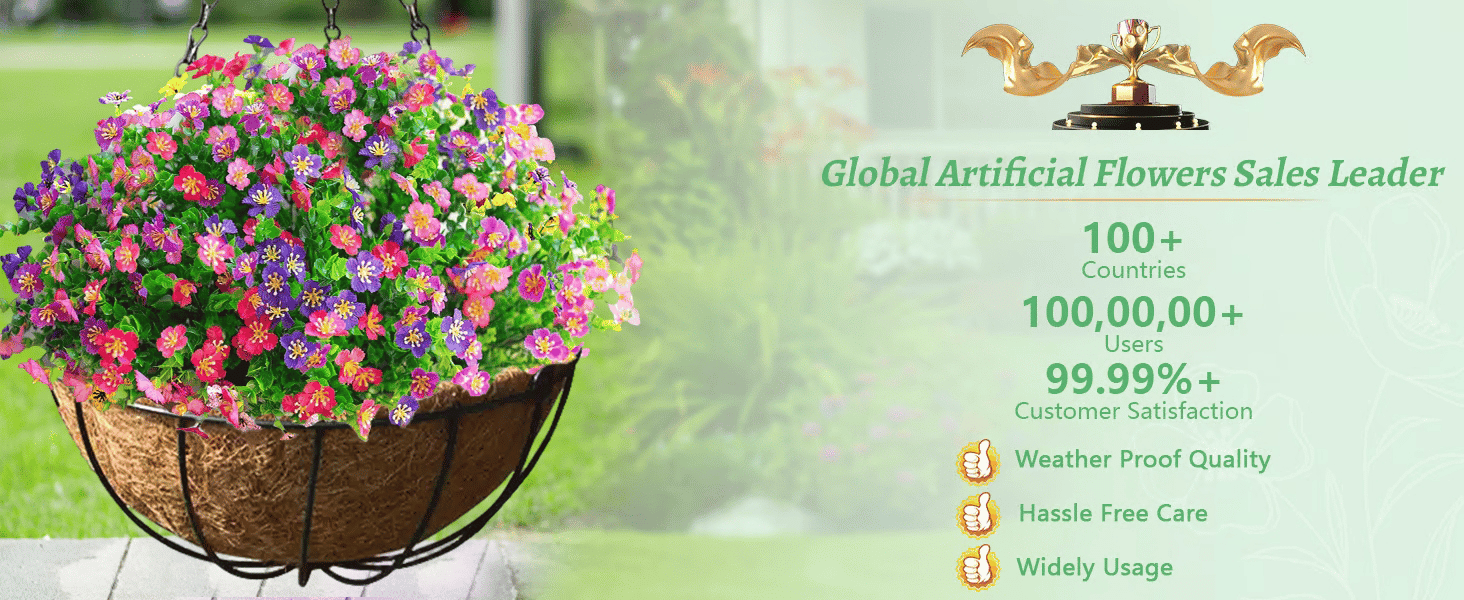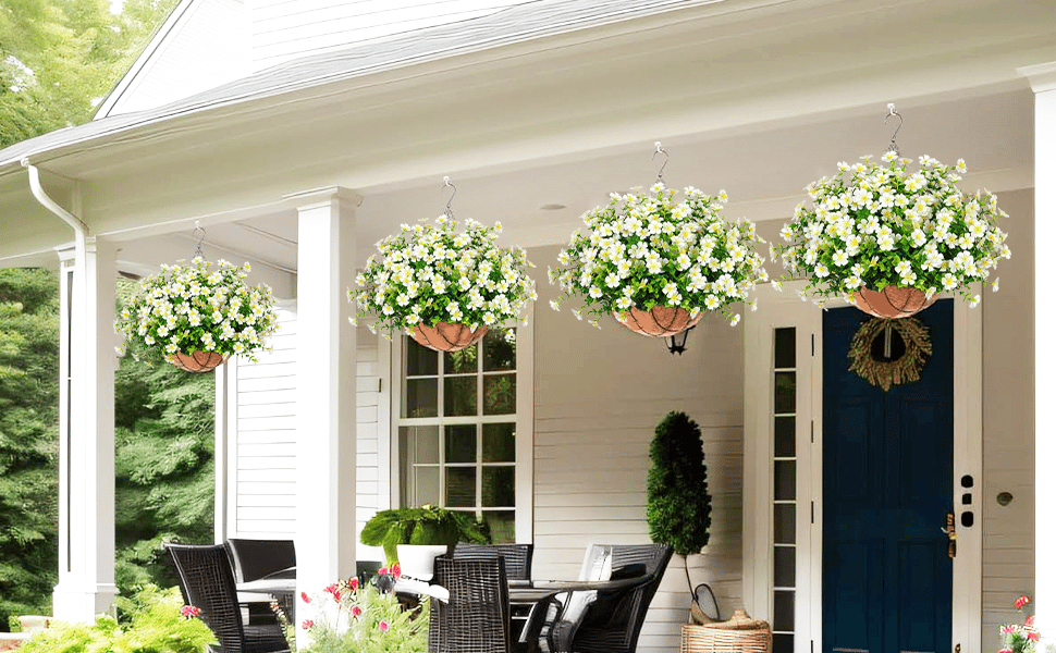 - Package Contents: Artificial flowers, Hanging baskets