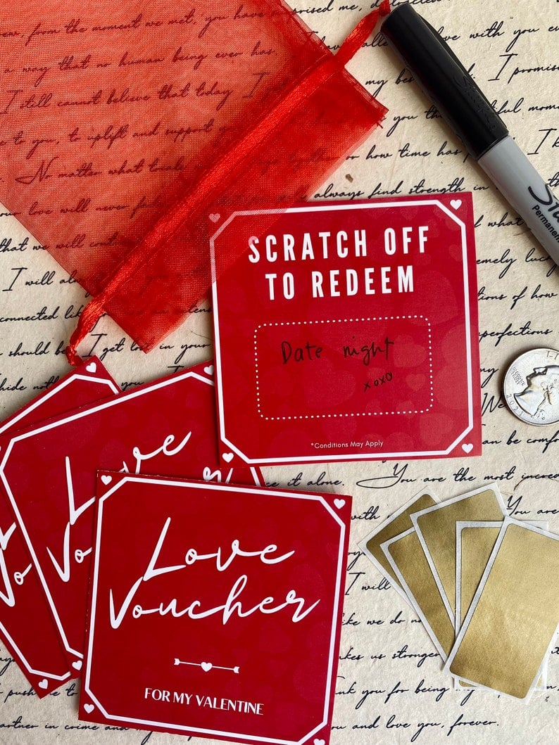 For Many Occassion: Make your own scratch-off love vouchers! Great item for Valentine's Day, anniversaries, birthdays, or just because!