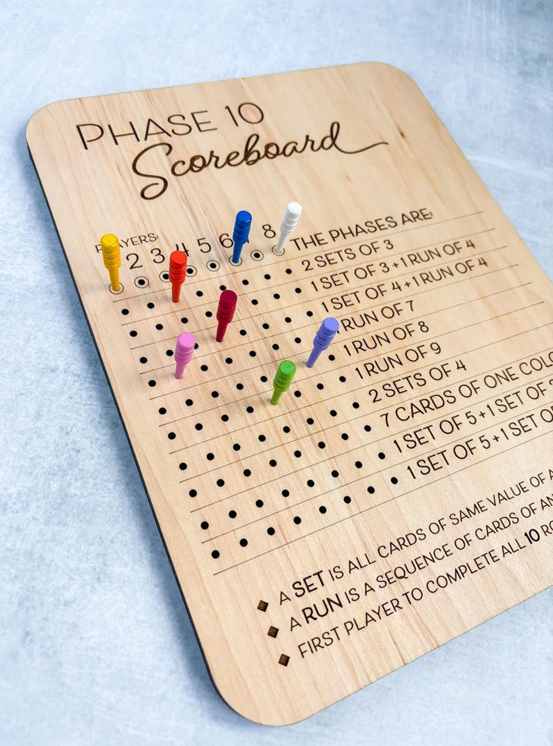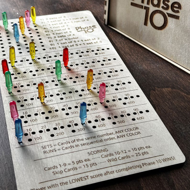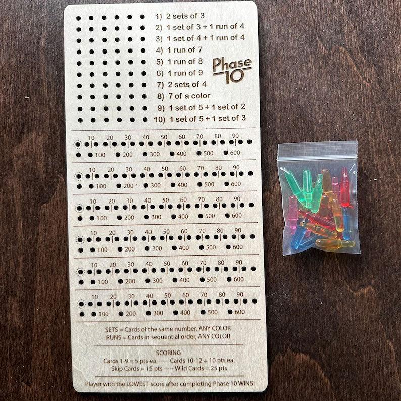 🌟With its sleek design and durable construction, the Phase 10 Score Board is the perfect companion for any Phase 10 enthusiast. Stay ahead of the game and keep track of your scores with ease.