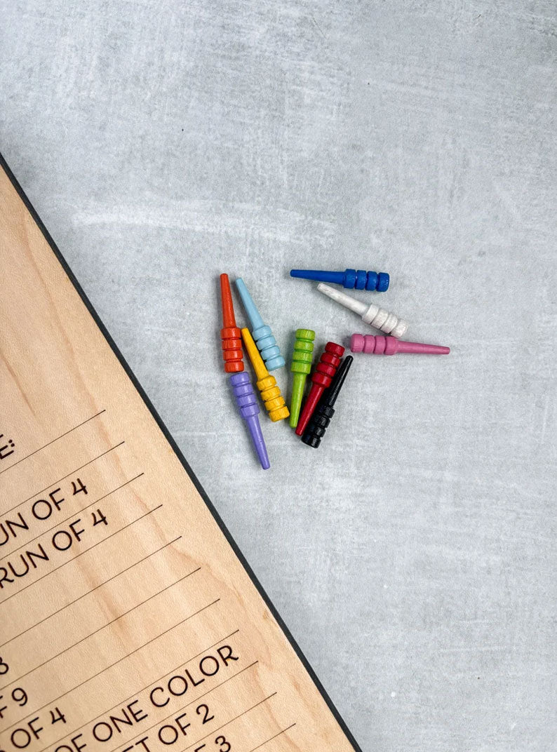 🌈Includes board and 8 colored pegs, pegs will vary in color.