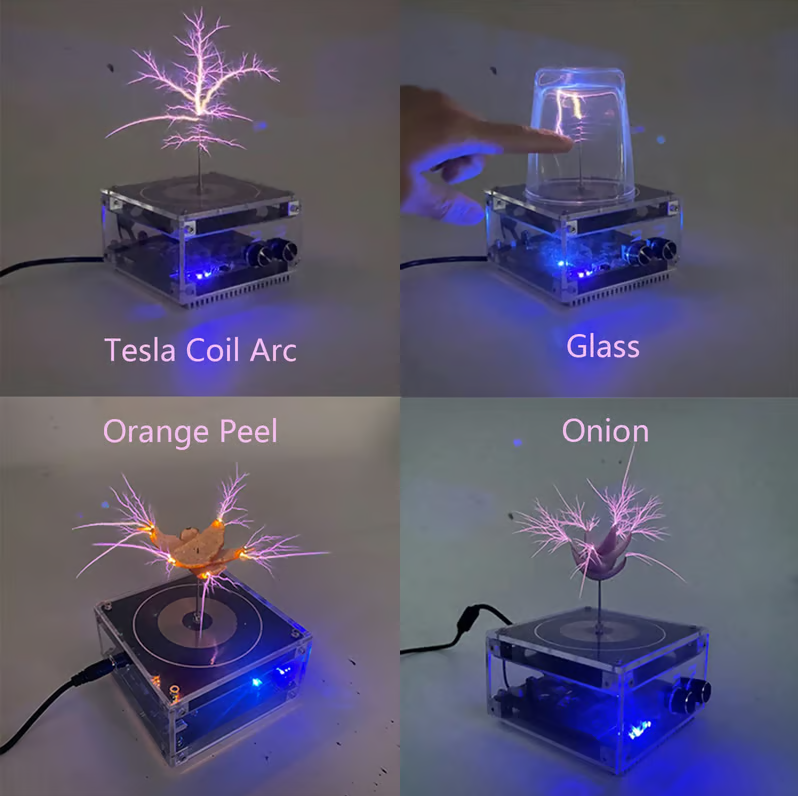 Endless Fun: This music Tesla has the function of wireless transmission and loudspeaker, can light gaseous tube and kind of bubbles. The arc of the wireless transmission experiment model can be touched at will, with only a slight feeling and temperature, use it with confidence. It is a perfect teaching tool to spark students’ interest of science, also a great gift. It's also a cool piece of art even just stands on your desk.