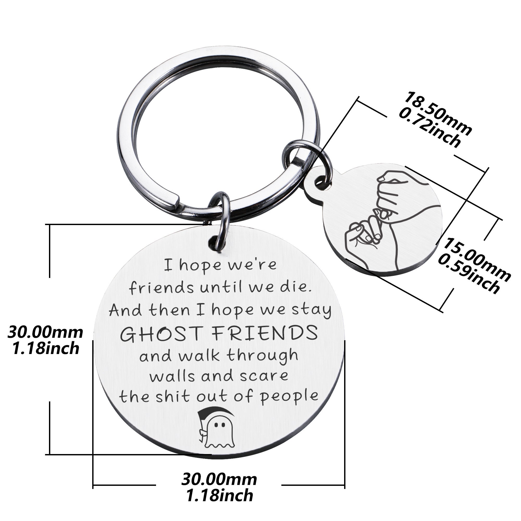🎉Excellent Quality: Constructed 100% stainless steel with laser engraved message. The text on the keychain and the color of the metel can stay for a long time, just like the friendship that never fades away. Available in four color (Black, Silver, Gold and Rose Gold) so that you can choose the one that fits you or your friends best.