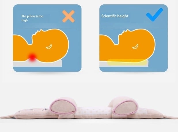 - Special baby pillow 45° gentle slope design that will affect your nose breathing and prevent side sleeping when blocked Almost 0 height design, it is not easy to get away from your head and not stuffy in the summer Made of cotton skin-friendly fabric that is breathable and moisture wicking to keep your head dry and comfortable
