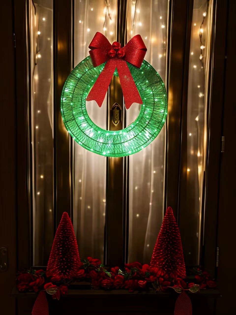This beautiful Christmas wreath adds a festive touch to your outdoor space. The unique design creates a warm and festive atmosphere, perfect for entertaining guests or simply spreading the festive spirit.
