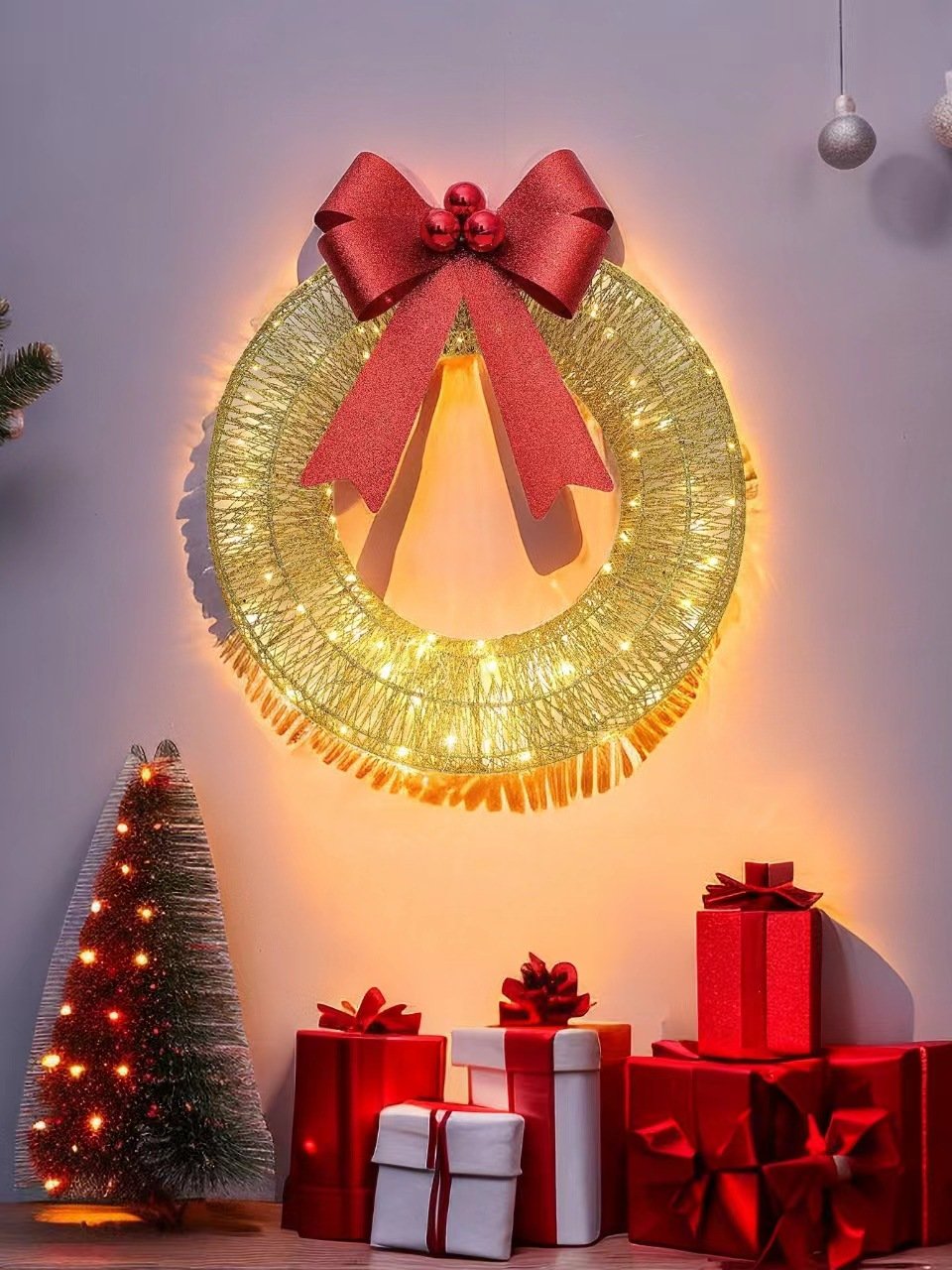ILLUMINATION & DECORATION: Decorated -listed LED warm white lights, the Christmas outdoor light decor illuminate your backyard and surrounding area with a dazzling festive glow. Besides, featuring with tinsel and sequin on surface, together with a red bow, our lighted wreath is also much attractive in day time.
