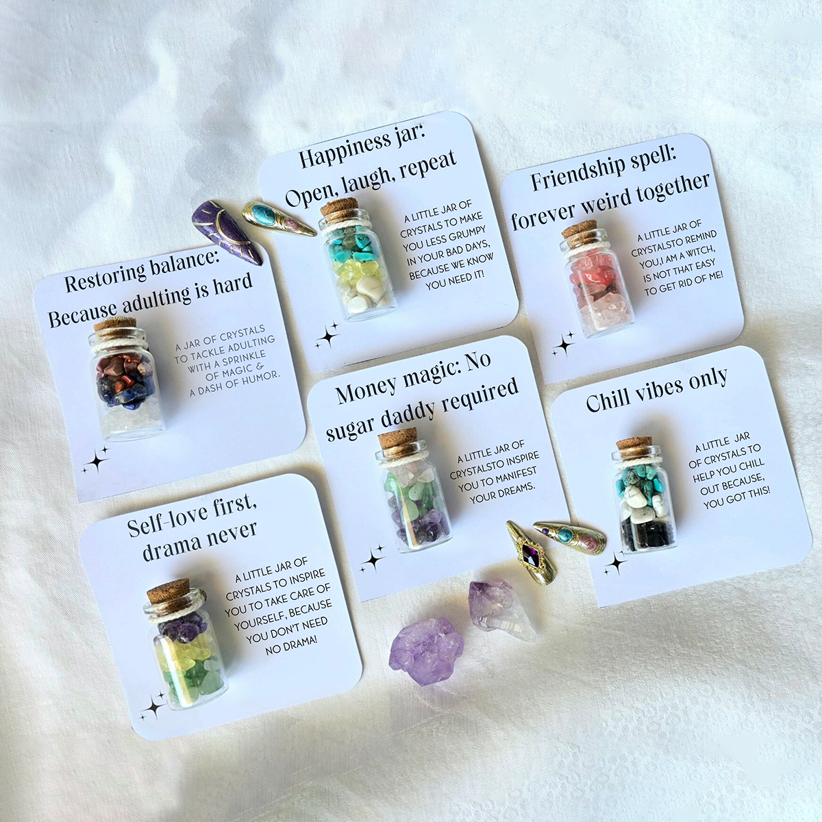 💜Combines crystal healing concepts with humour, appealing to those interested in personal development and spiritual growth!
