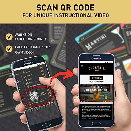 ▶️VIDEO INSTRUCTION FOR EACH COCKTAIL - Each card will include a unique QR code that you take scan on a tablet or smartphone to bring up an official Cocktail Cards video showing you how to make that specific cocktail.