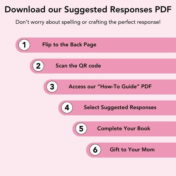 bringing you closer to your mom with every promptA Personalized Keepsake-Once completed, this book becomes a cherished reminder of your love, perfect for Mother's Day, birthdays, or any occasion to show Mom how much she means to you. Β