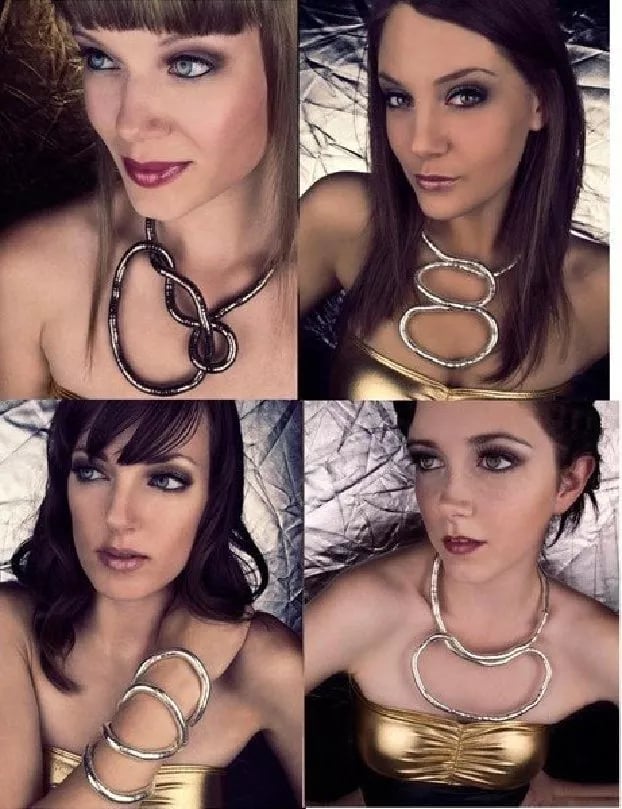 It is a unique and eye-catching necklace. Highly malleable, you can change your look at any time. The necklace is very soft and lightweight, will not pinch your skin or fine hair, can be used as a necklace, bracelet, cuff, or belt, and is super cool.