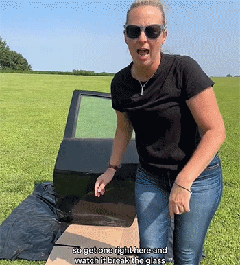 Select the left or right window, the window breaker doesn't work on car windshields. It is effective only against tempered glass commonly used in side windows.
