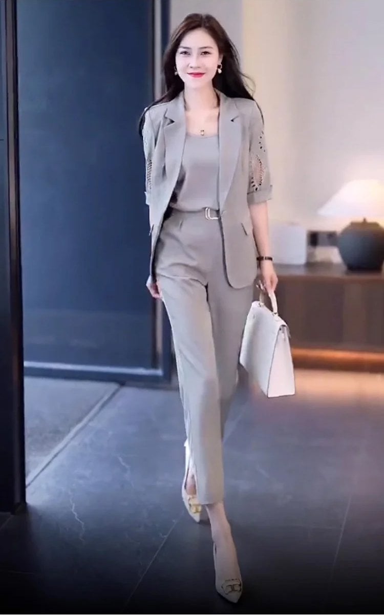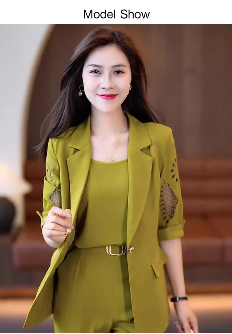 SLEEK AND STYLISH DESIGN: Elevate your fashion game with this Women's Fashionable and Slim Blazer 3-Piece Suit Set. Its sleek and contemporary design exudes confidence and elegance. Whether it's a formal event or a professional meeting, this suit set keeps you effortlessly chic.