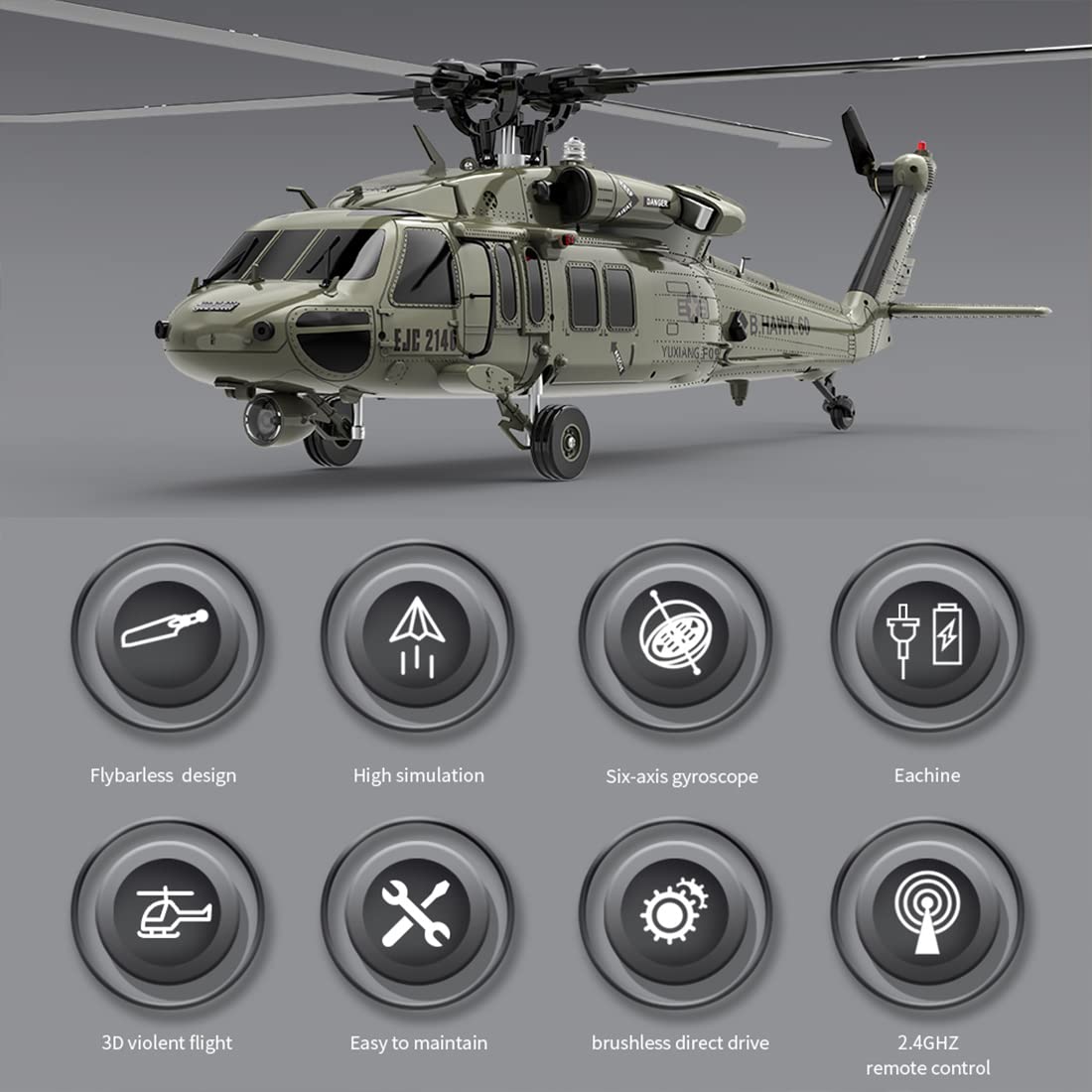 Altitude Hold: Equipped with a smart chip, the rc helicopter for adults can hover automatically without controlling the throttle and maintaining the altitude; Equipped with imported gyroscope, the rc attack helicopter can stabilize the direction without deviation.