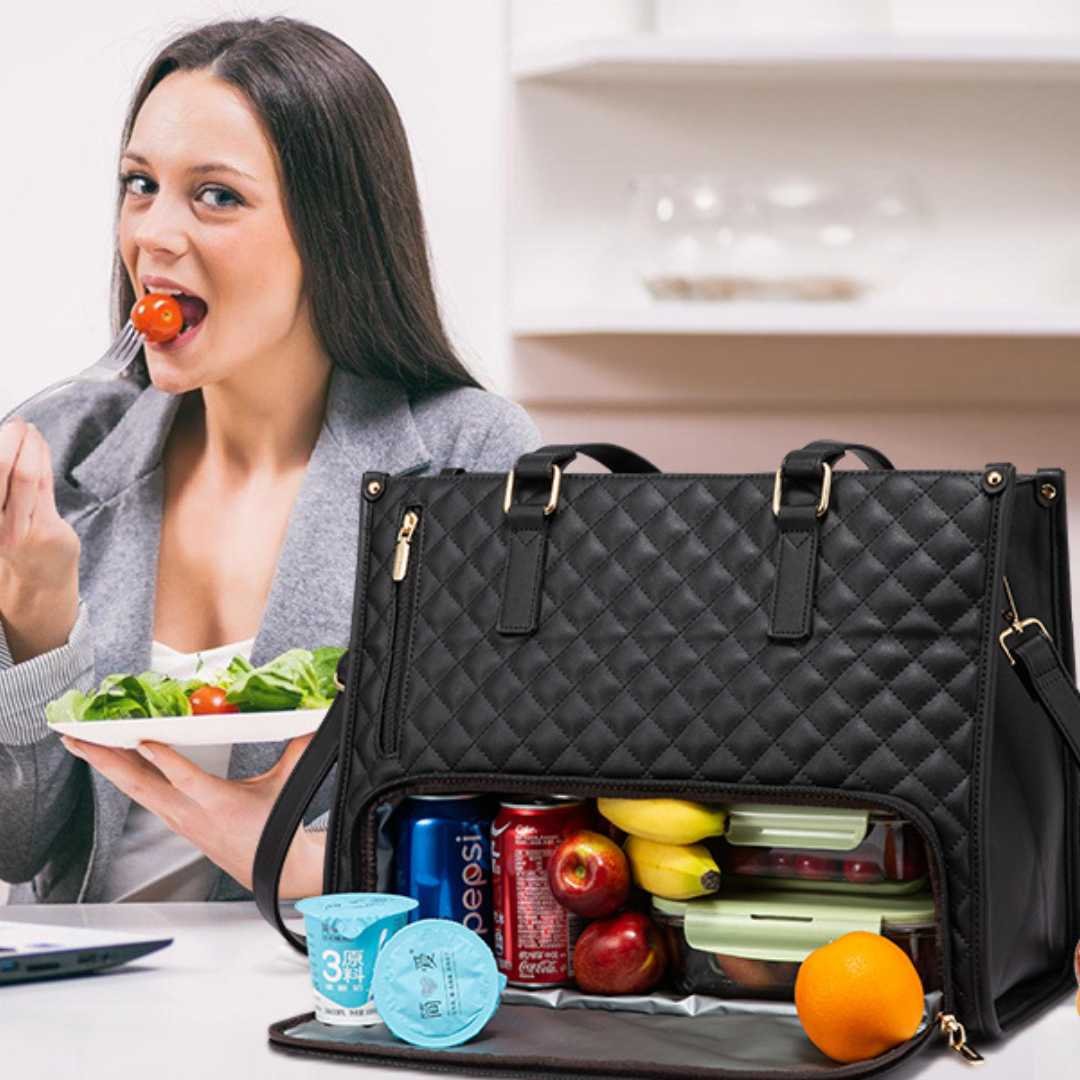 Lunch Tote Bag for Women - 15.6 Inch Laptop Bag with Insulated Lunch Compartment, Quilted Large Capacity Computer Handbag