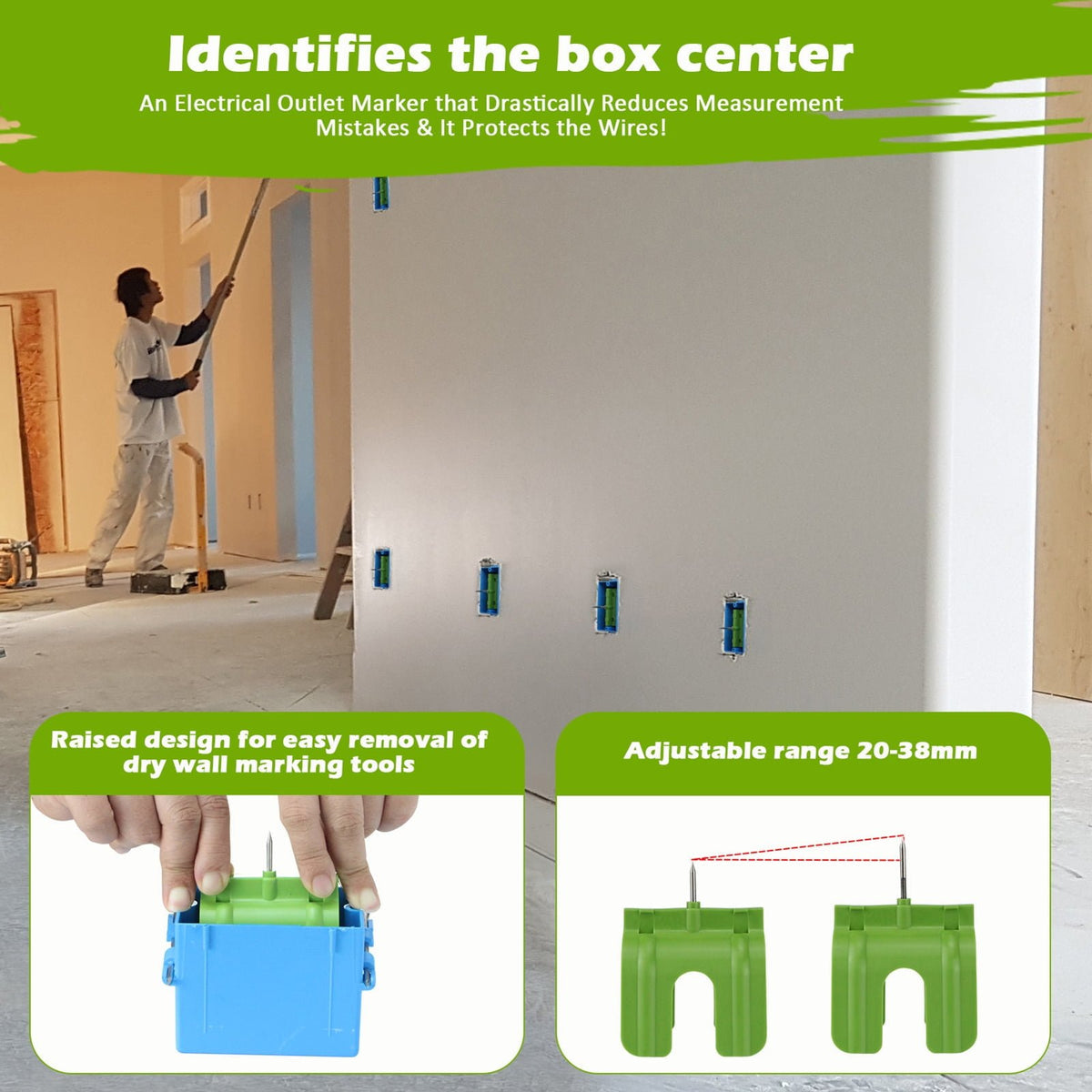 - INCREASES JOB SITE SAFETY: By reducing errors in outlet positioning and protecting wires from damage, this outlet marker contributes to a safer work environment for all involved in drywall installation projects.