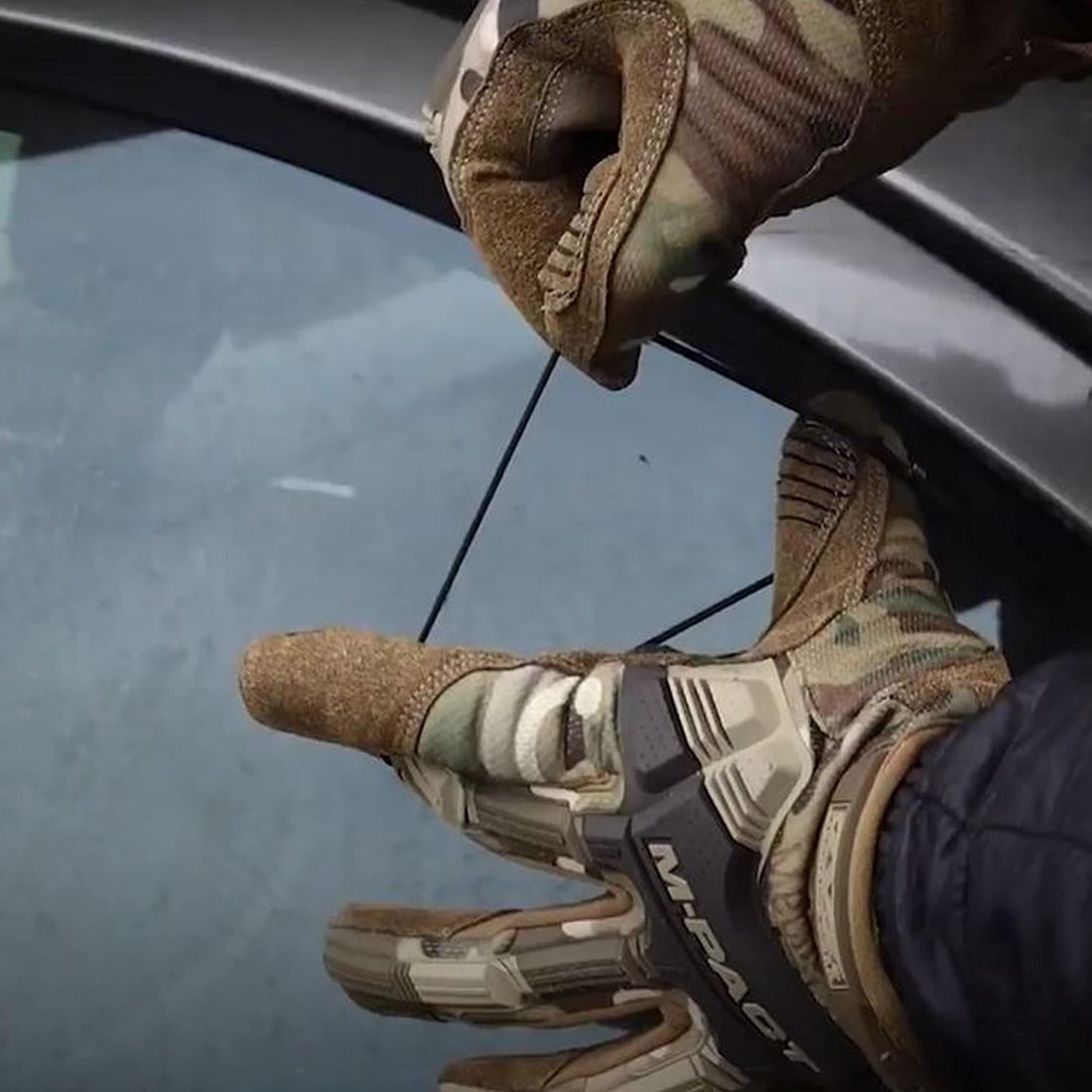 To use the strap, simply remove the wrist strap, place it around the thumb and forefinger, pull back on the projectile, and release it to shatter the glass for vehicle egress through the side or rear windows.