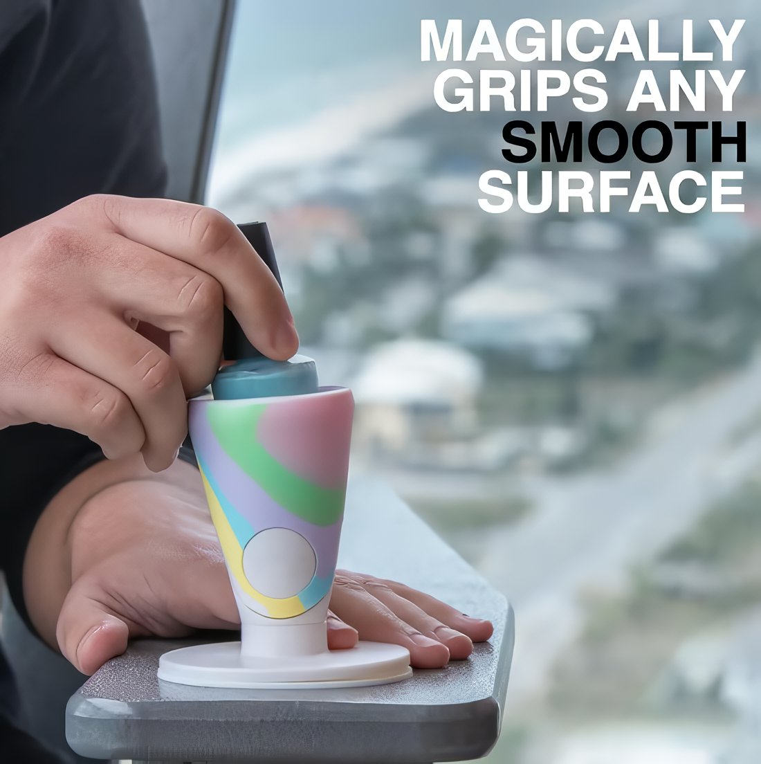 Smart Grip creates a low-pressure zone that holds it securely to the surface, even vertically. A stray elbow or hand movement can’t knock it over. Just lift your holder straight up, and the air-lock releases magically.