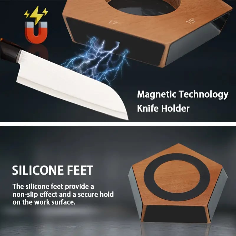 Multi-functional Magnetic Angle Base: The knife sharpeners for kitchen knives always maintaining a constant sharpening angle is a key factor in sharpening your knives, with 5 angles supports: 15-17 for Japanese knives suitable for higher sharpness requirements or ultra-fine cutting, 17-20 for standard kitchen knives is suitable for most home kitchens, 22 for meat cleavers to meet your different needs(Excluding serrated and scissors).