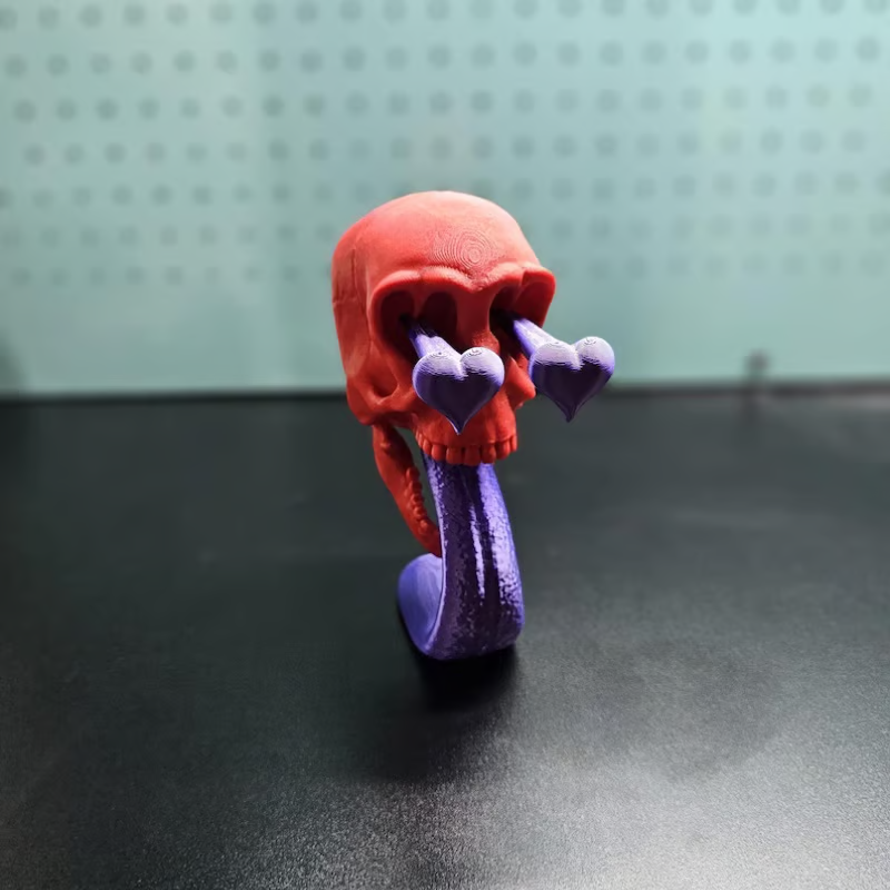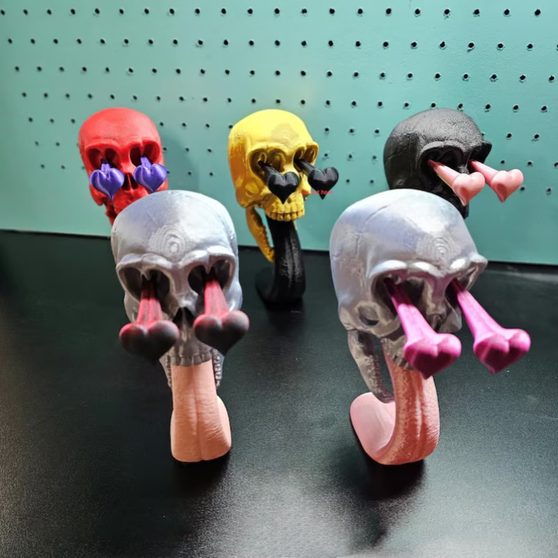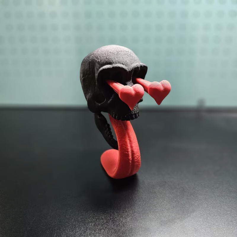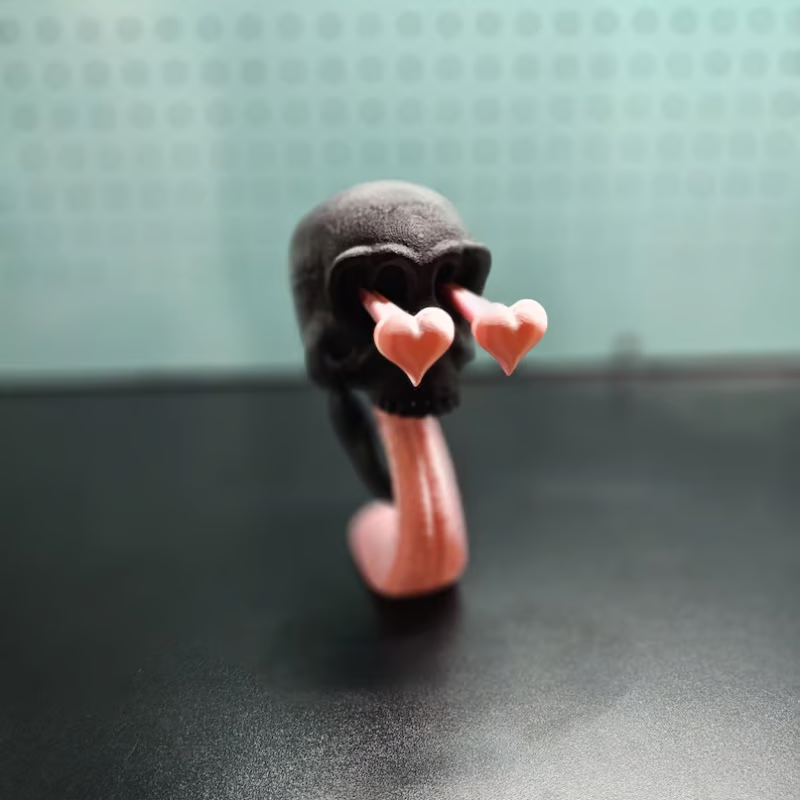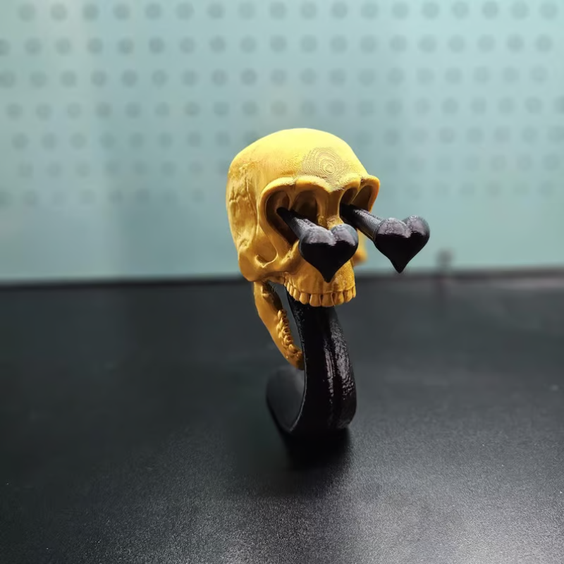 Featuring exaggerated bulging eyes and a tongue sticking out as a stand, this skull is so captivated by love that it’s literally tongue-tied! Designed for those who appreciate the unusual, this sculpture combines elements of humor and gothic art to create a unique statement piece.