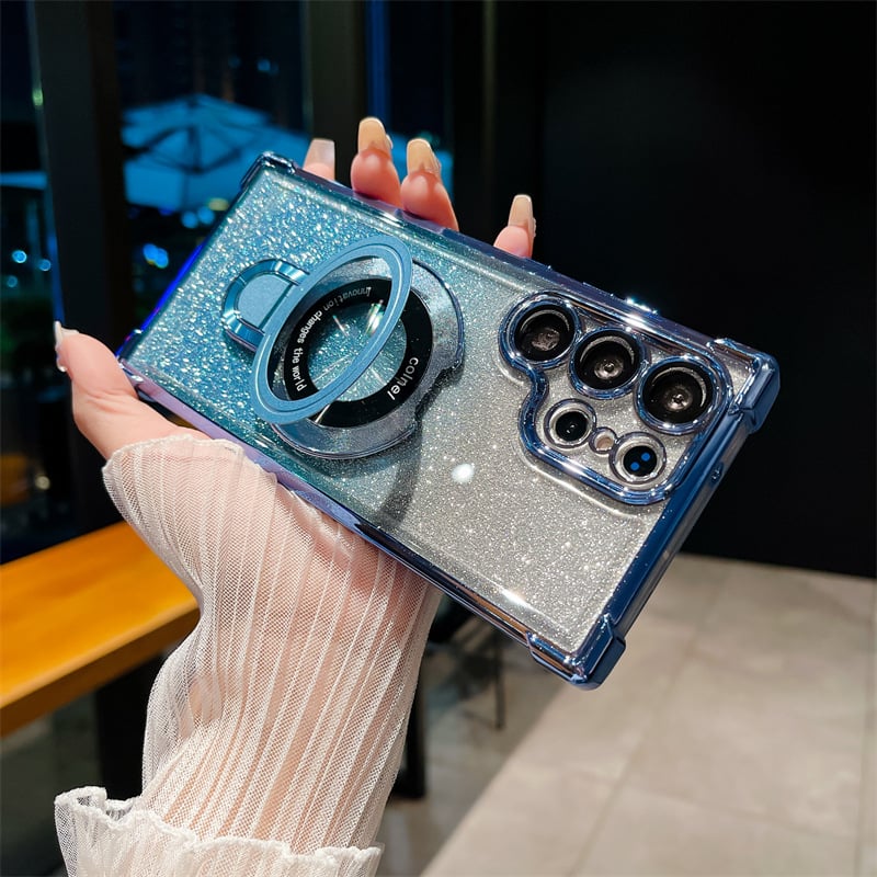 🔥New In Samsung S25 Series Case - Samsung Electroplated Glitter Four Corners Airbag Protection Magnetic Case with Invisible Stand