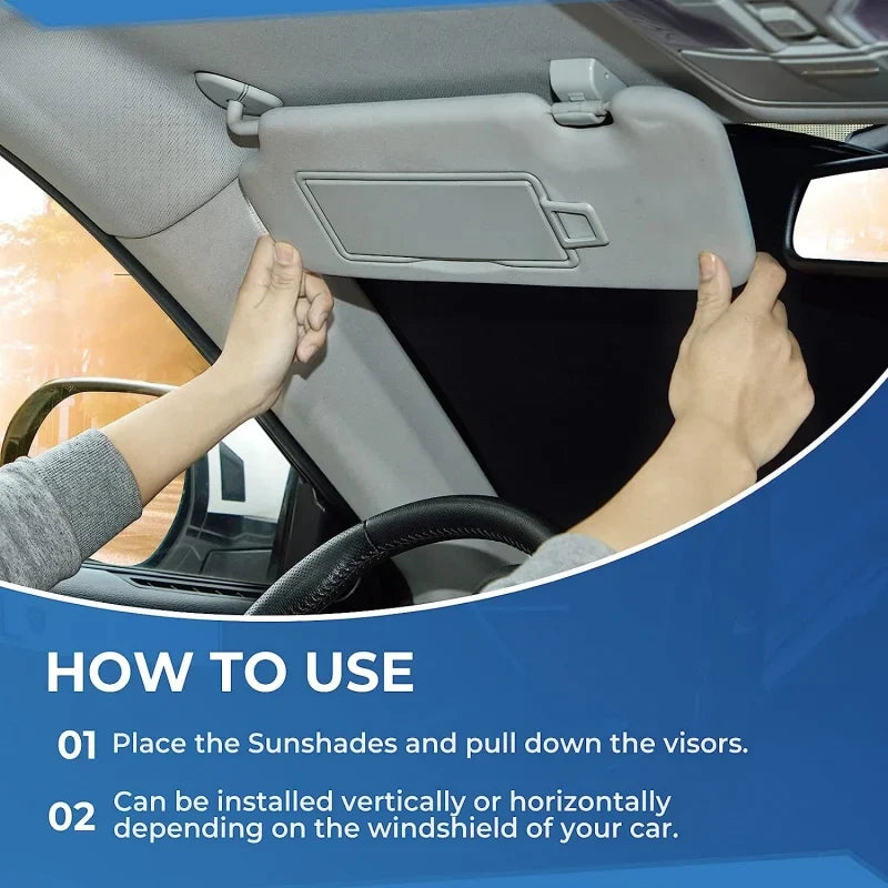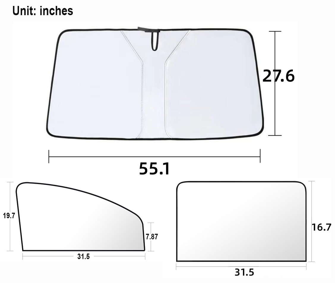 Note: The sunshade panels required for the diagonally opposite side windows are of the same size. The white reflective surface should face outward when installed. Please ensure that the panels are installed on the interior side of the vehicle, not the exterior.