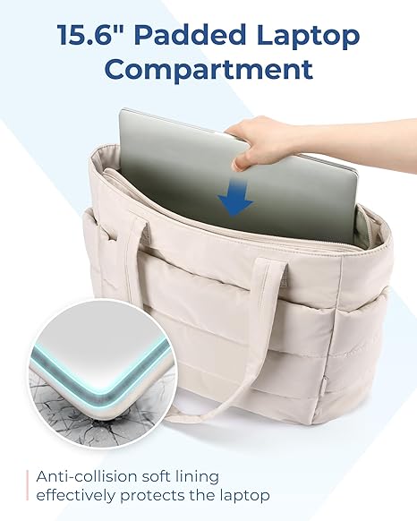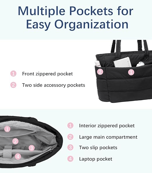 🎁Last Day Promotion 60% OFF-👜BAGSMART Tote Bag for Women, Lightweight Puffy Tote Bag with Compartments, Quilted Shoulder Bag Handbag for Travel, Work