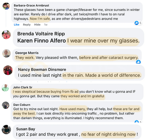 If you don't feel safe driving at night or are not 100% happy for any reason after wearing Headlight Glasses, please let us know