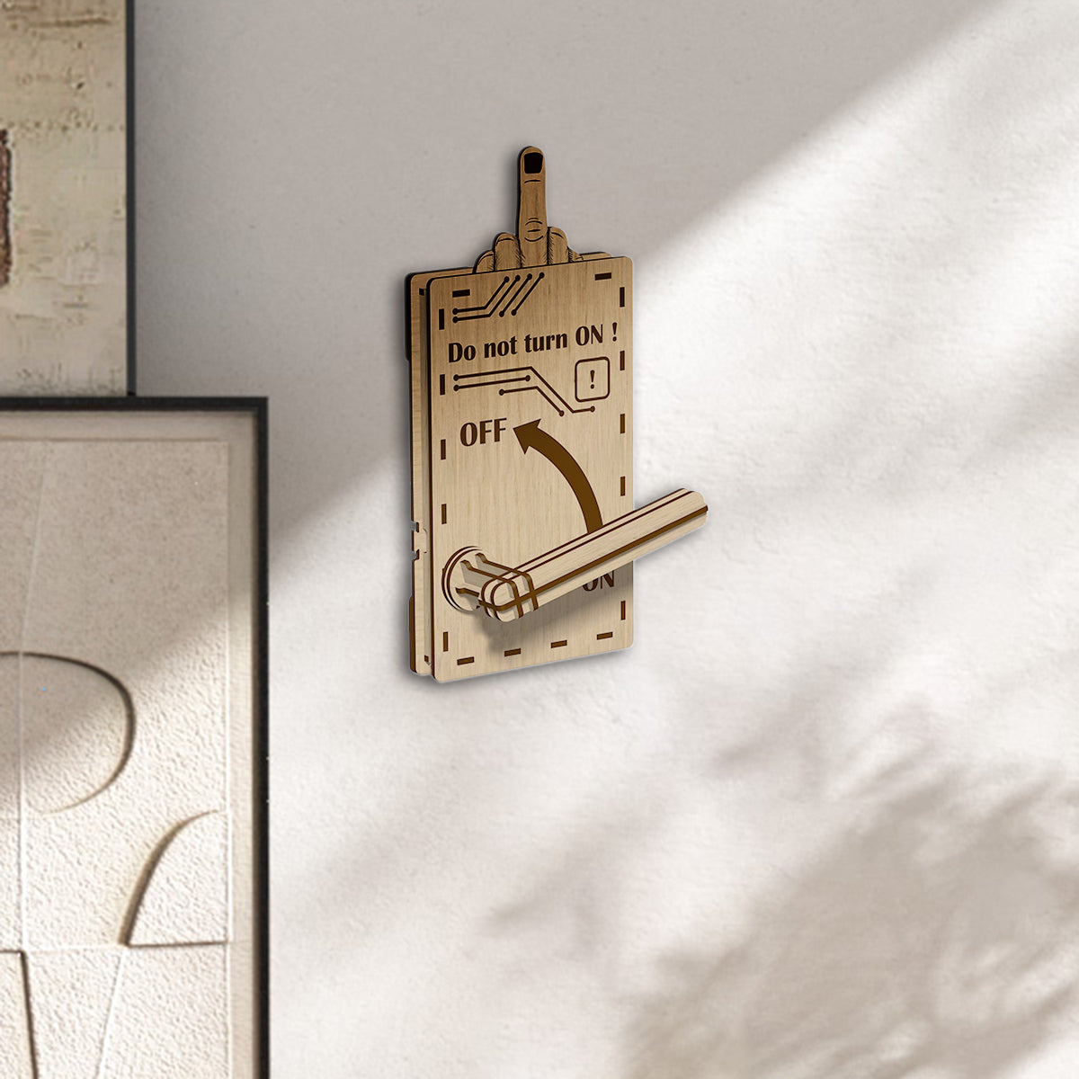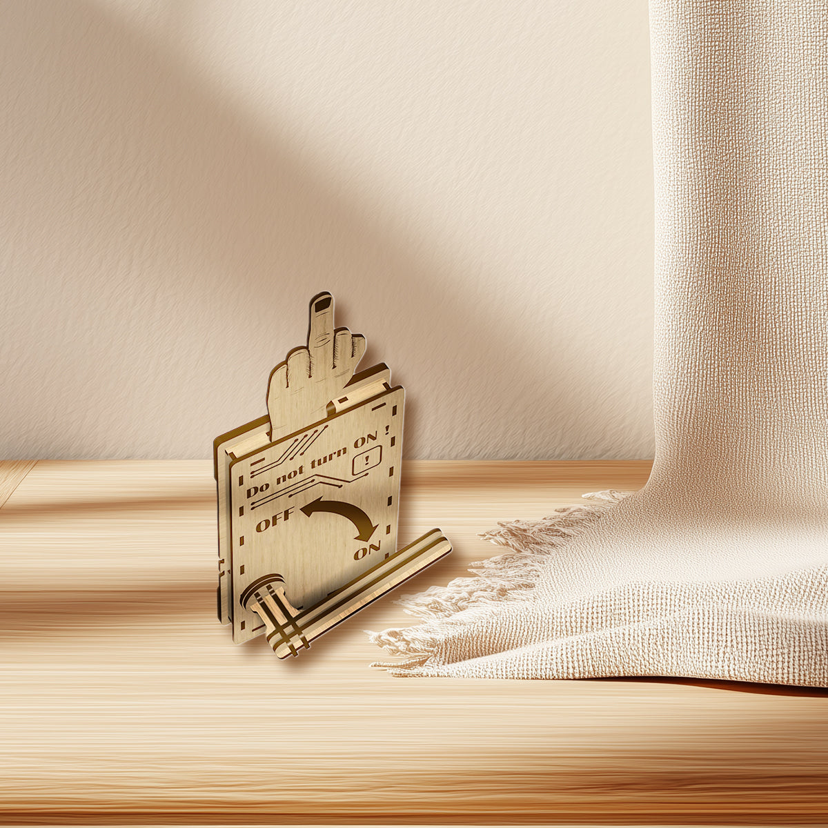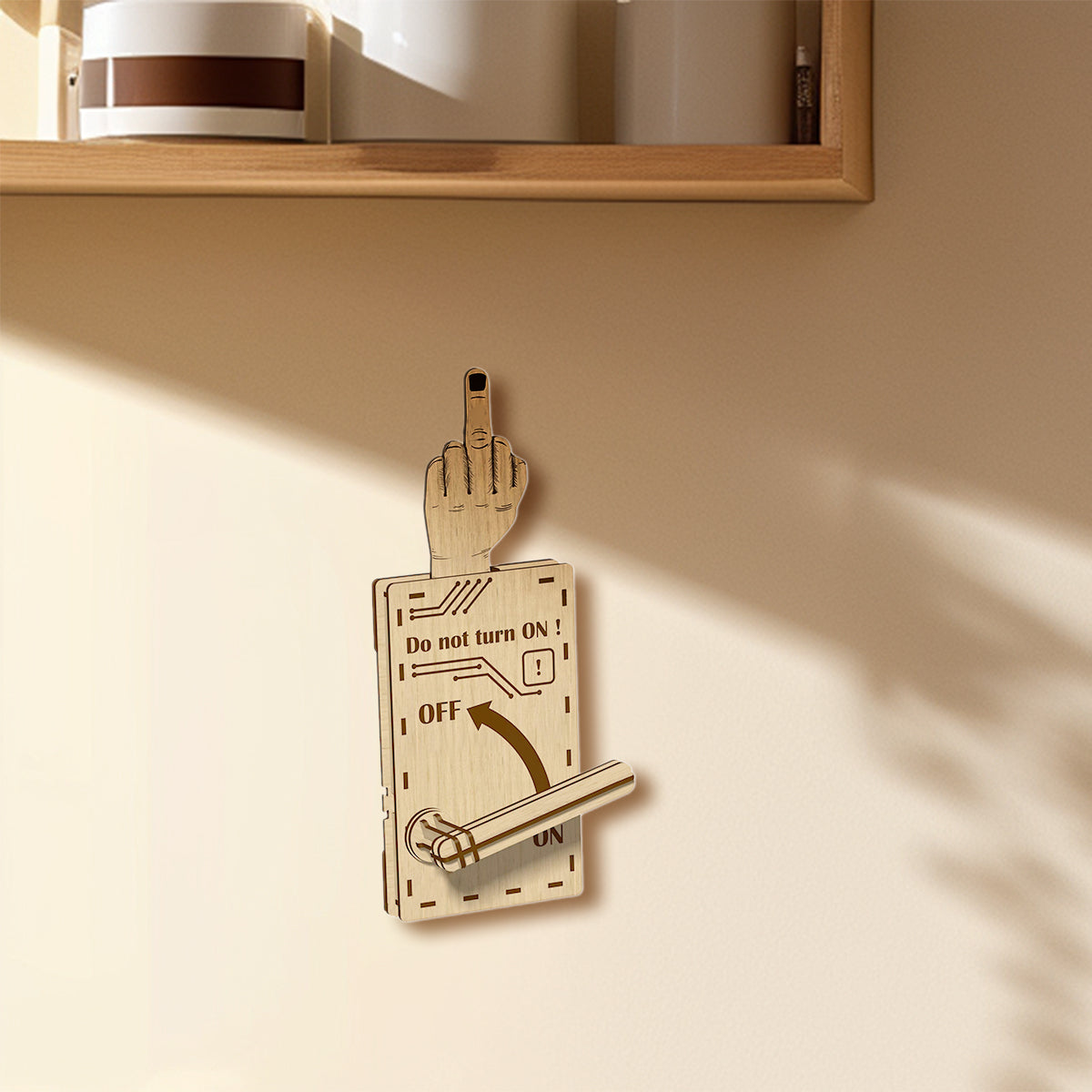 The moment someone flips the switch to "ON," BOOM — a cheeky middle finger pops up to remind them who's boss! Crafted from high-quality wood with laser-cut precision, it’s the perfect combo of sass and class. Guaranteed to catch everyone off guard and spark belly laughs every time.