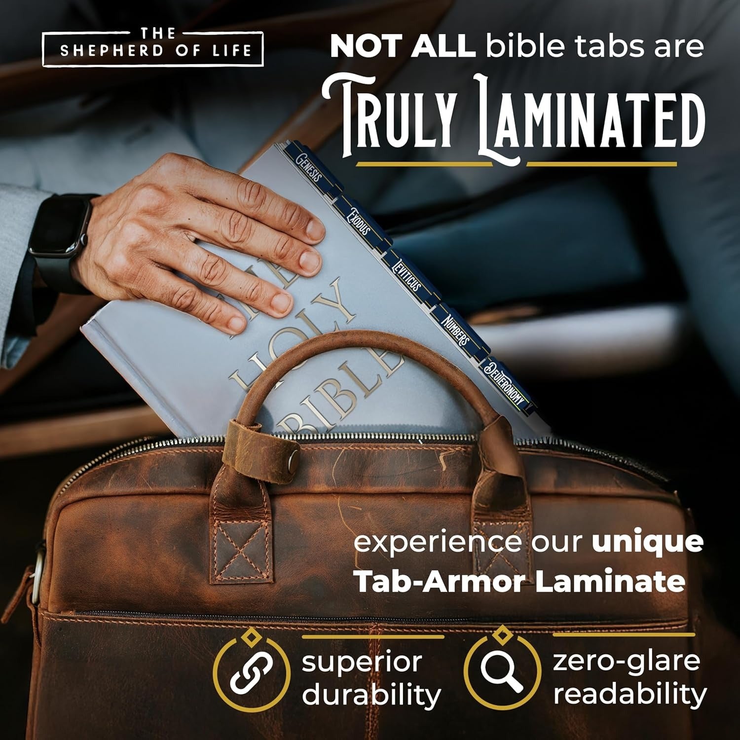 While most laminated Bible Tabs are too flimsy, or add a ton of weight, these Tabs for Bible are just right, and covered in fine, silky-soft lamination so you can easily locate scriptures without feeling like your favorite book is too heavy, or diminished by gaudy plastic.