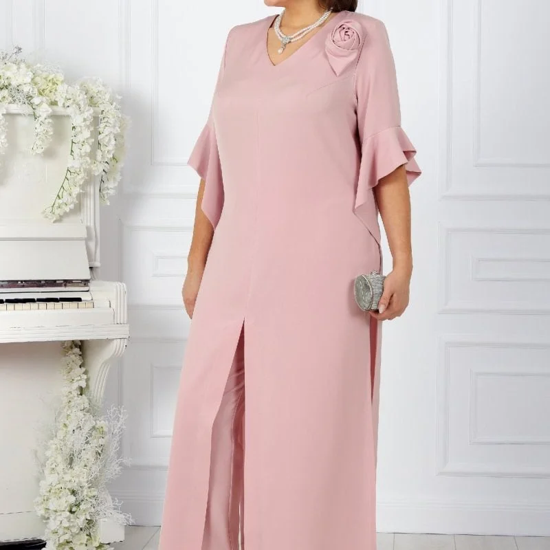 Package Includes: 1 *Women's V-Neck Dress & Elastic Waist Pants Set