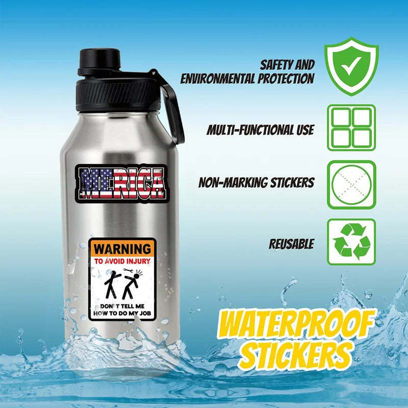 filled with American-themed stickers featuring superior design and graphics. This collection offers the best value and variety, including representations of the American flag, patriotic symbols, the punisher emblem, prank-inspired designs, and stickers infused with humor