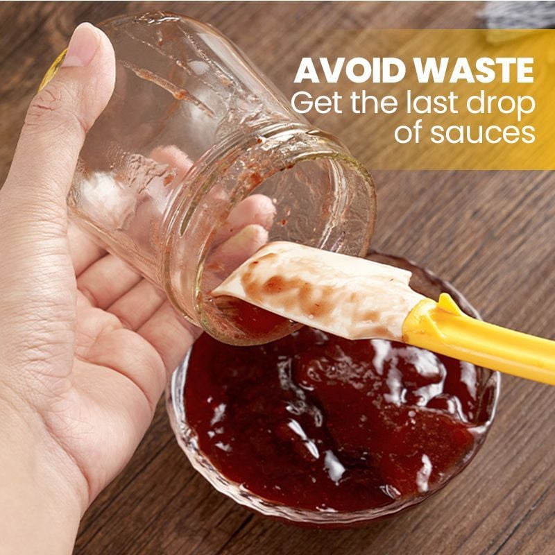 The mini kitchen spatula with a slim design is great for getting the last bits of food and spreads out of the skinny jars,
