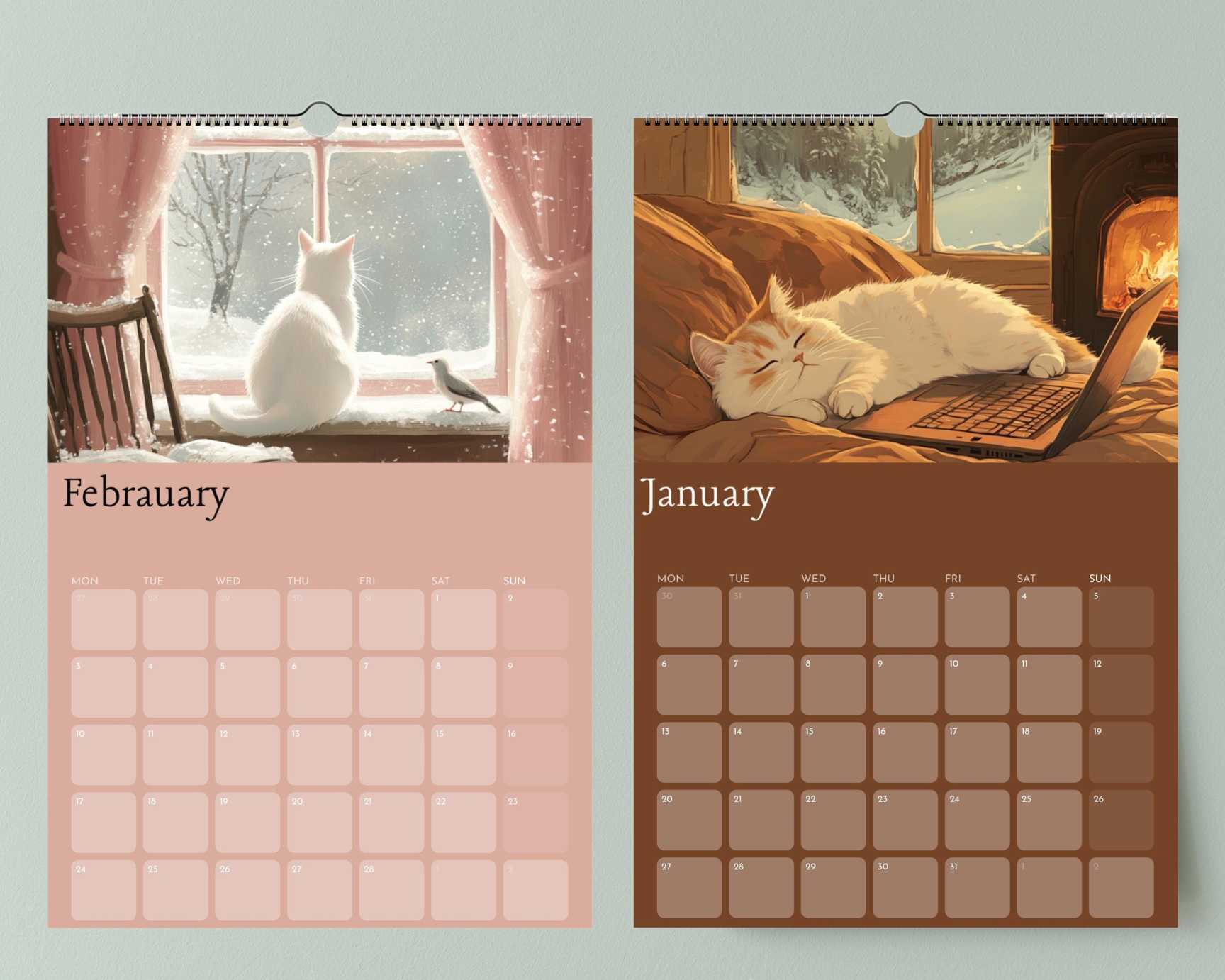 😽Featuring a collection of beautiful and playful cat images, this calendar is perfect for any cat lover who wants to bring joy and structure to their everyday routine. Each month showcases a different cat-themed photo or illustration, offering a fresh burst of feline charm to brighten your walls.