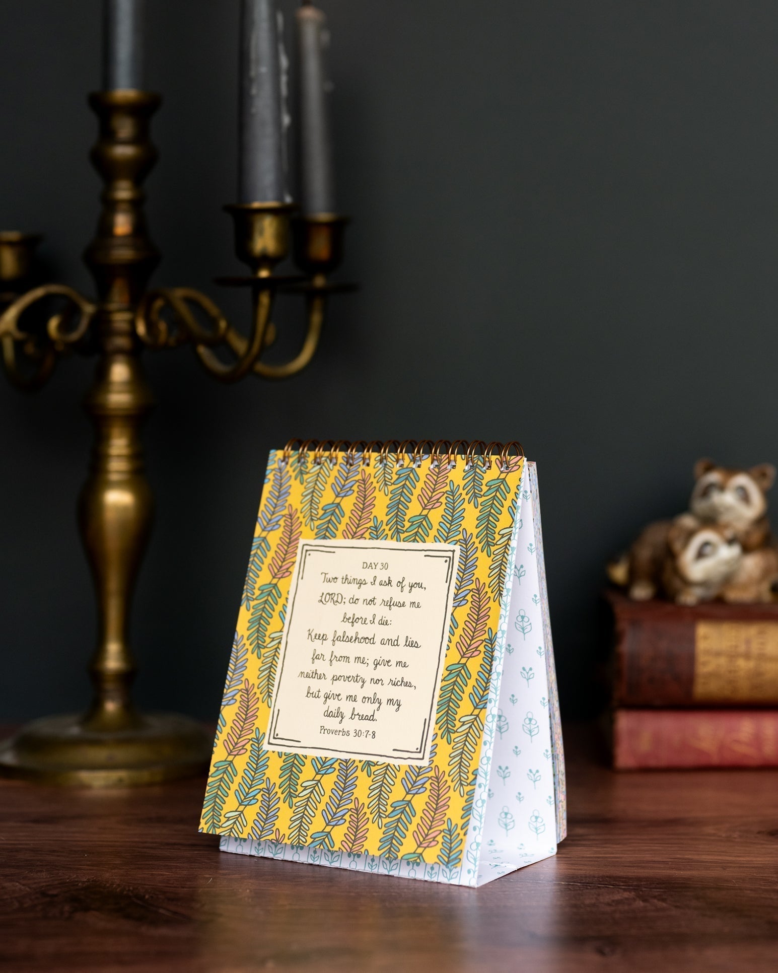 30 Days of Proverbs – Vibrant/Soft is a perpetual calendar of…you guessed it…Proverbs! It’s great decor as a desk calendar, kitchen calendar, or reading nook calendar. Filled with wise and beautiful excerpts from the book of Proverbs — this calendar will have you hiding God’s word in your heart as you say a proverb aloud each day, month after month. A new proverb for every day of the month. Once the 30 days are over, you start over with Day 1 again.
