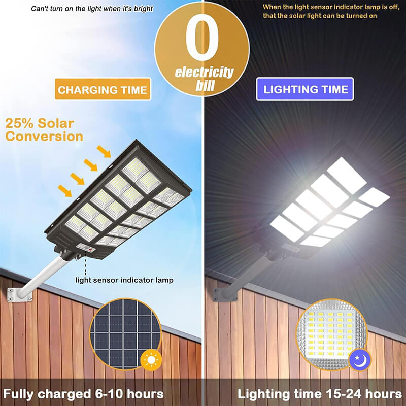 Automatically charge during the day, charge on cloudy day as well, and automatically turn on at night. The upgraded solar panel has a conversion rate of up to 90%, a service life increase of 100 times, and an output efficiency increase of 10%, with a lifetime up to 50,000 hours+.