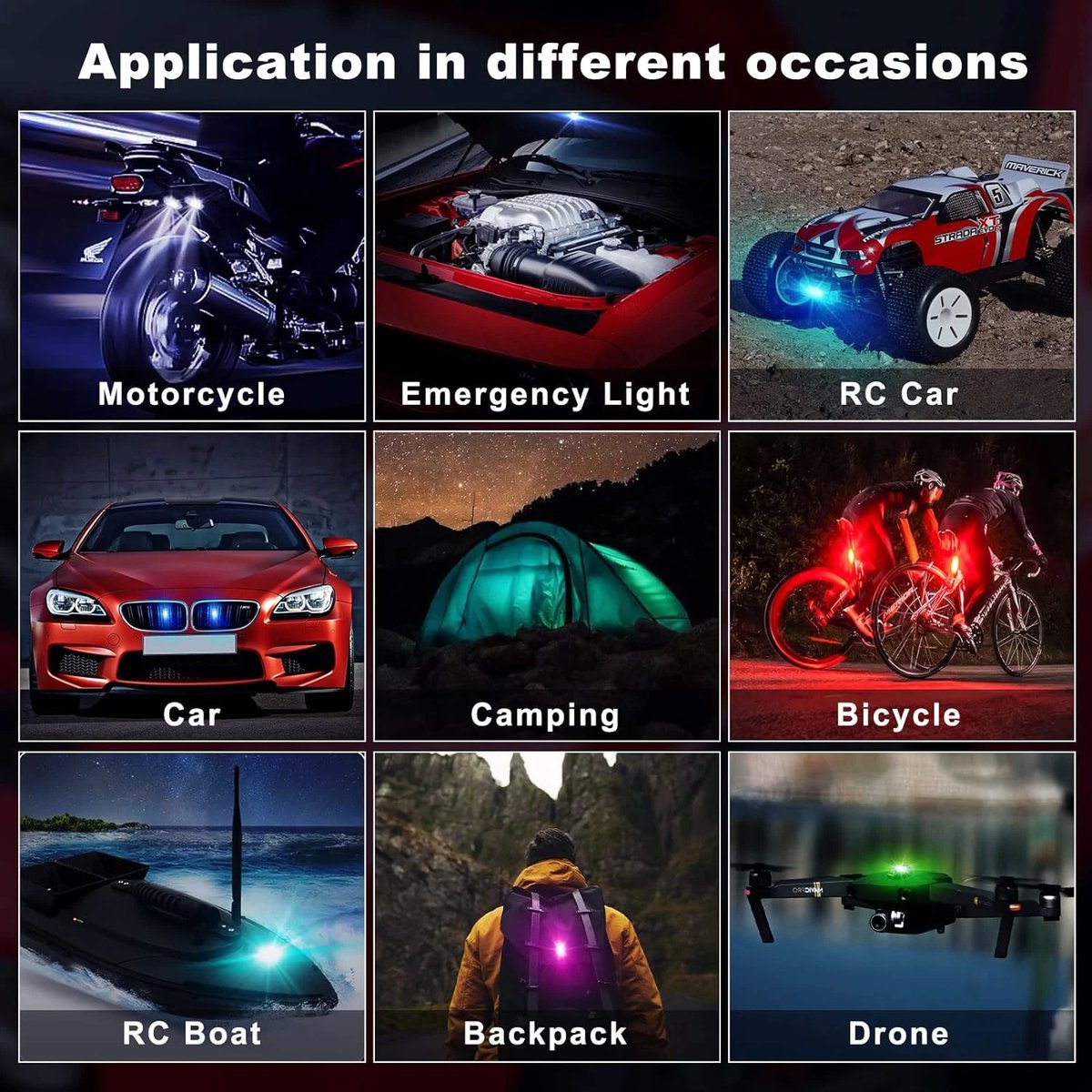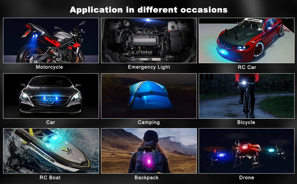 Wide Applications: The drone anti-collision lights are suitable for Drone DJI Air 2S / Mini 2 / Mavic Air 2 / Mavic Mini / Mavic Pro / FPV / Holy Stone. Besides, the strobe light can be used for RC car, RC boat, E-bike, dirt bike, camping, fishing, hiking, truck emergency.